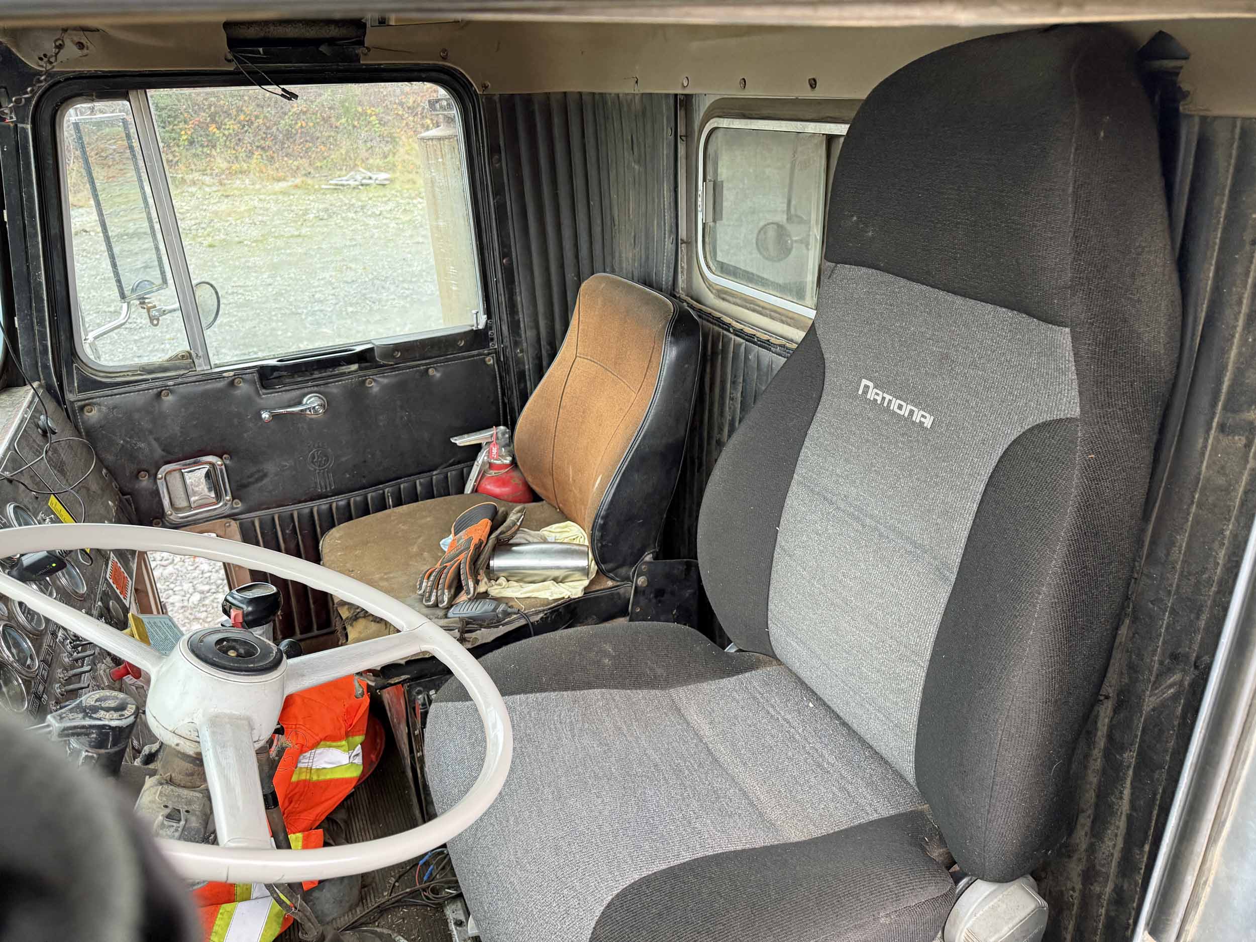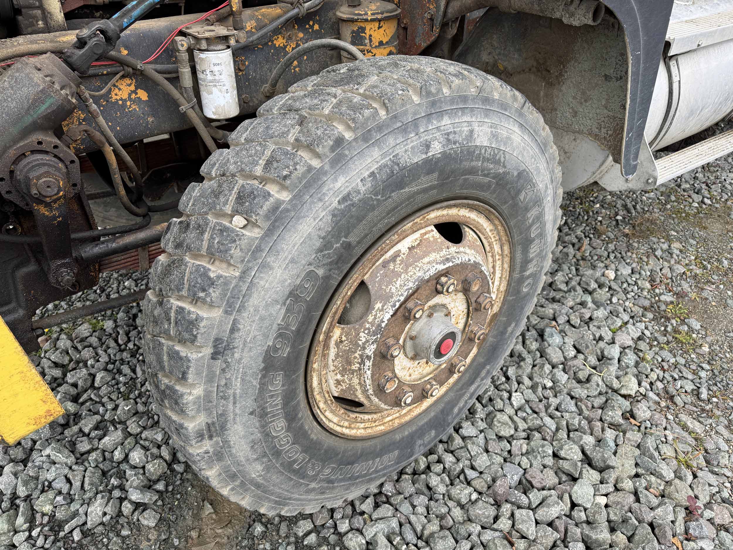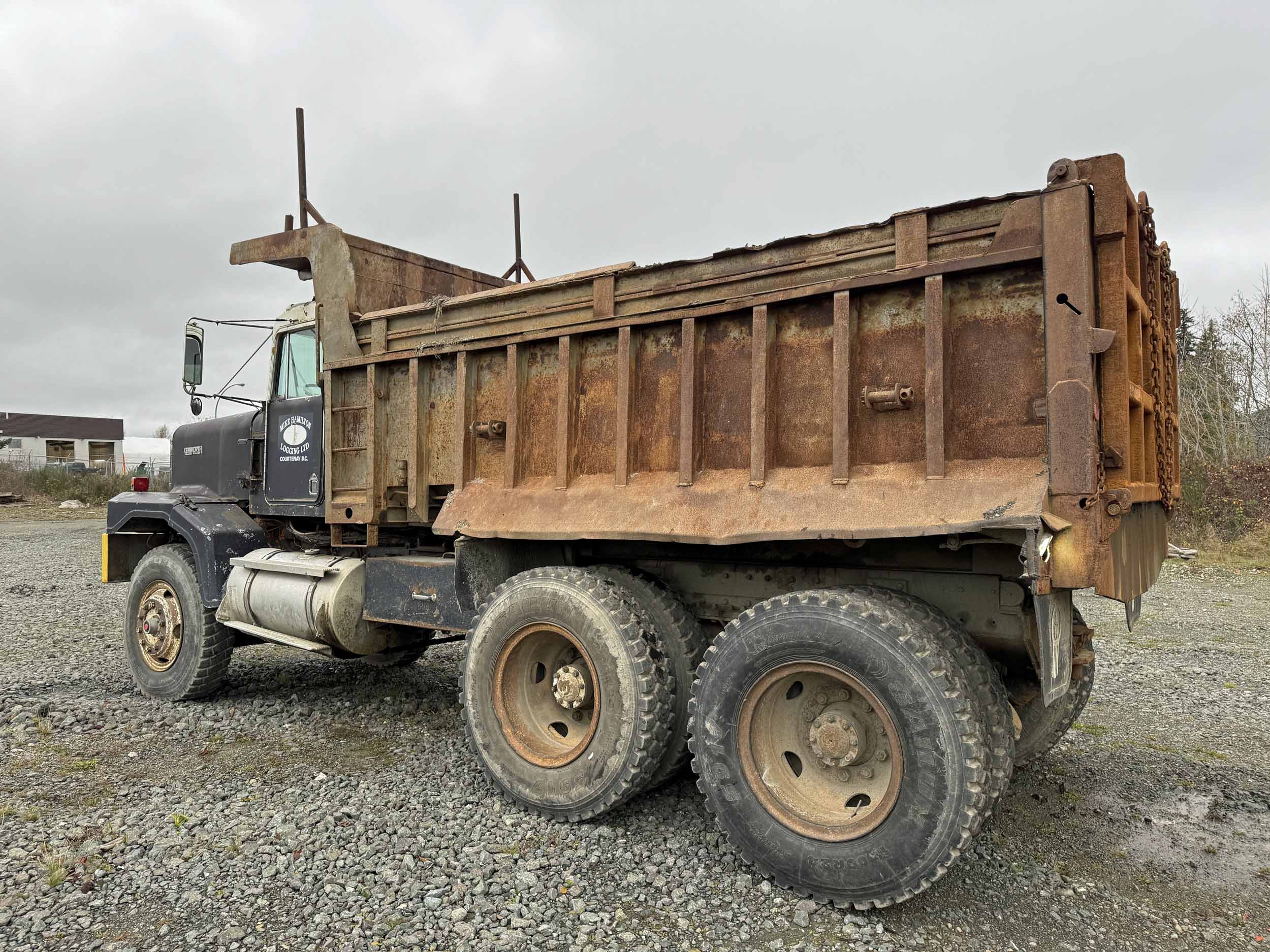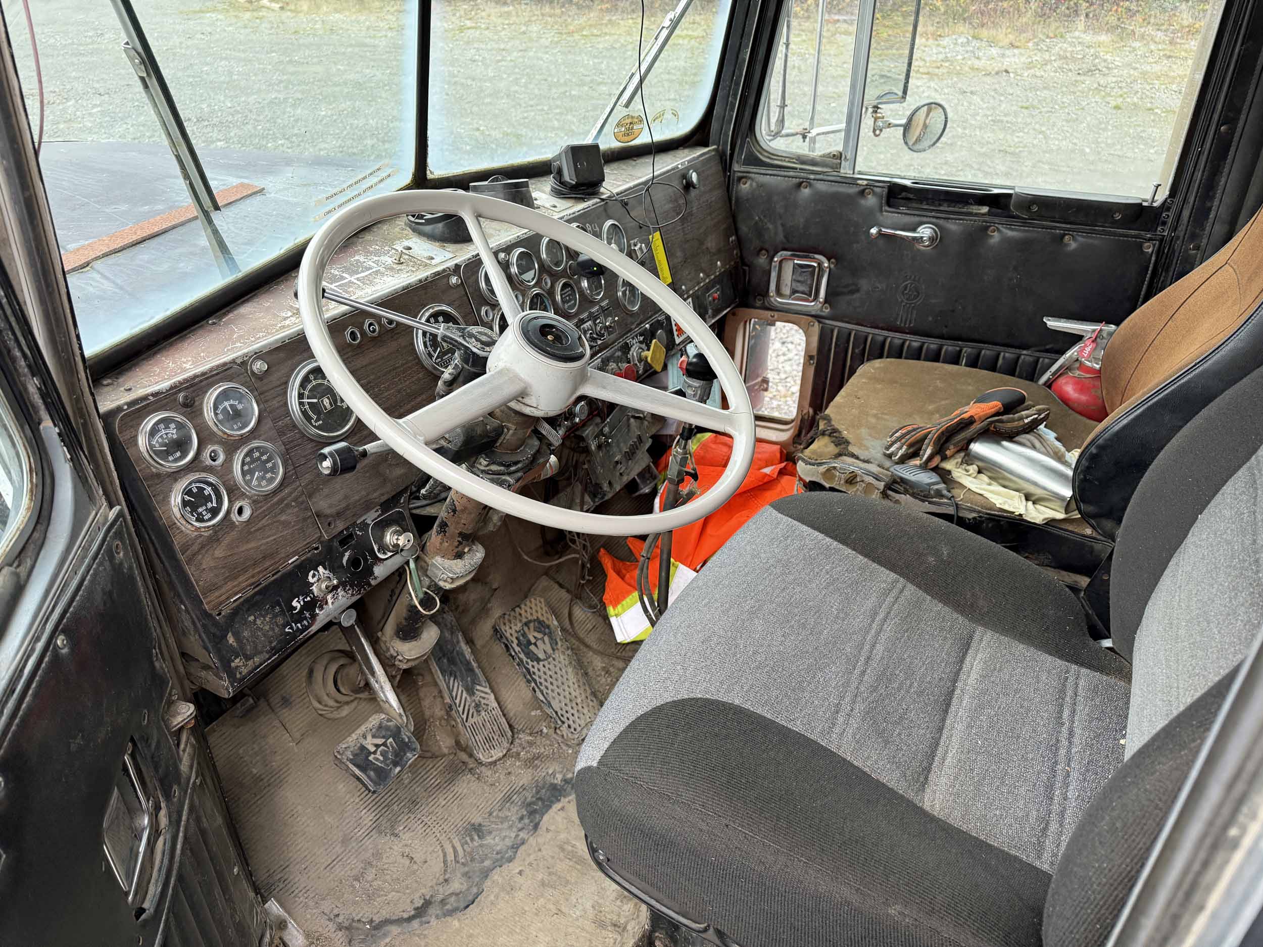 Equipped with Cummins NTC350BCII six cylinder diesel engine, 13 speed transmission, Jake brake, Kenwood VHF radio, Nahanni HD steel HD dump box with tailgate and single cylinder hoist, spring suspension, 4640 rear axles, Bud wheels, Sailun 12:00R24 tires, rear pintle hitch.