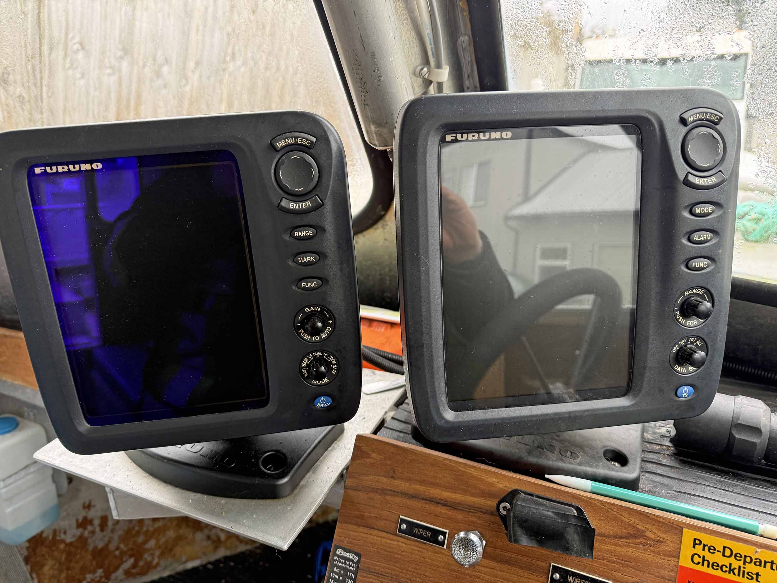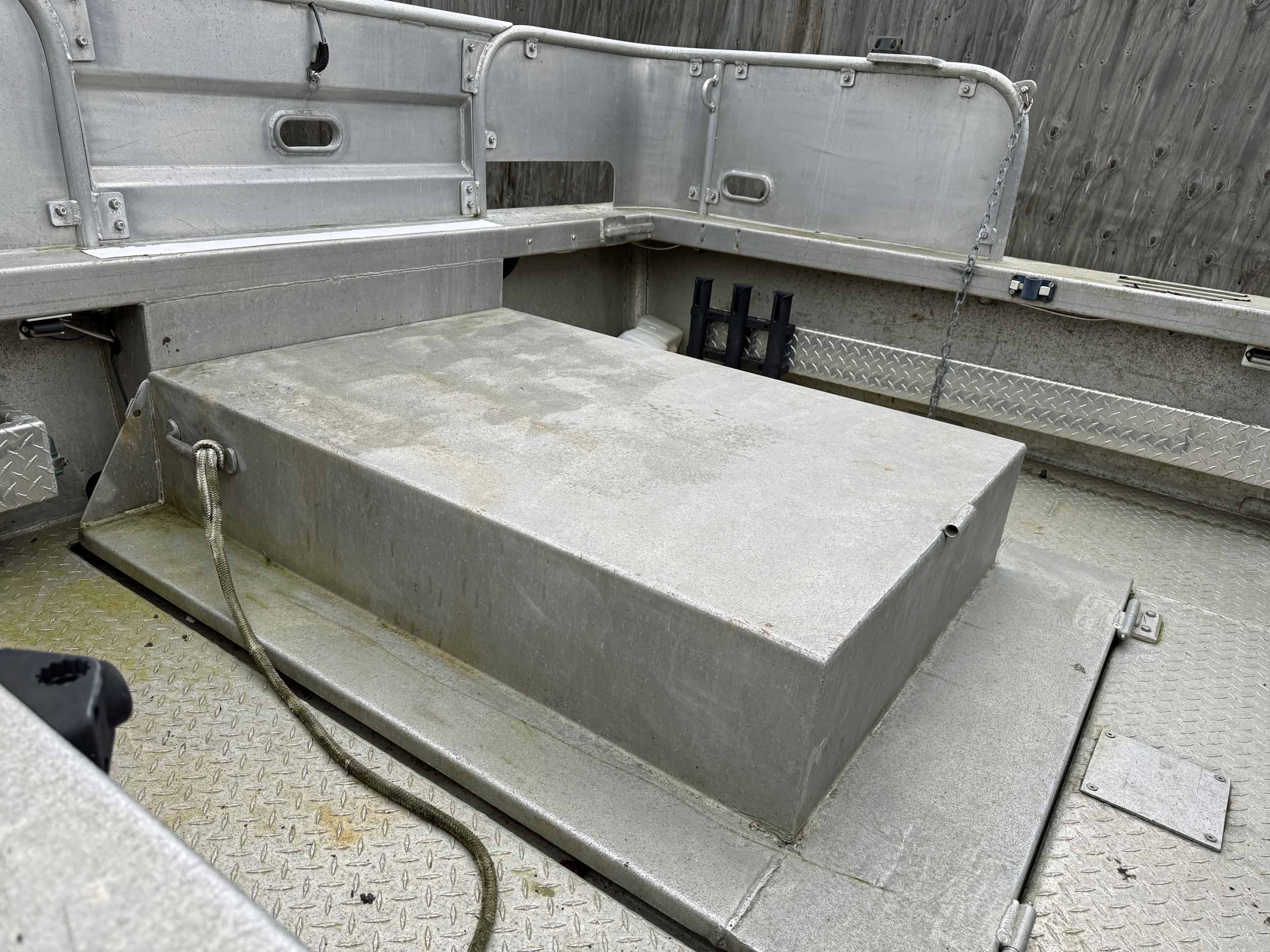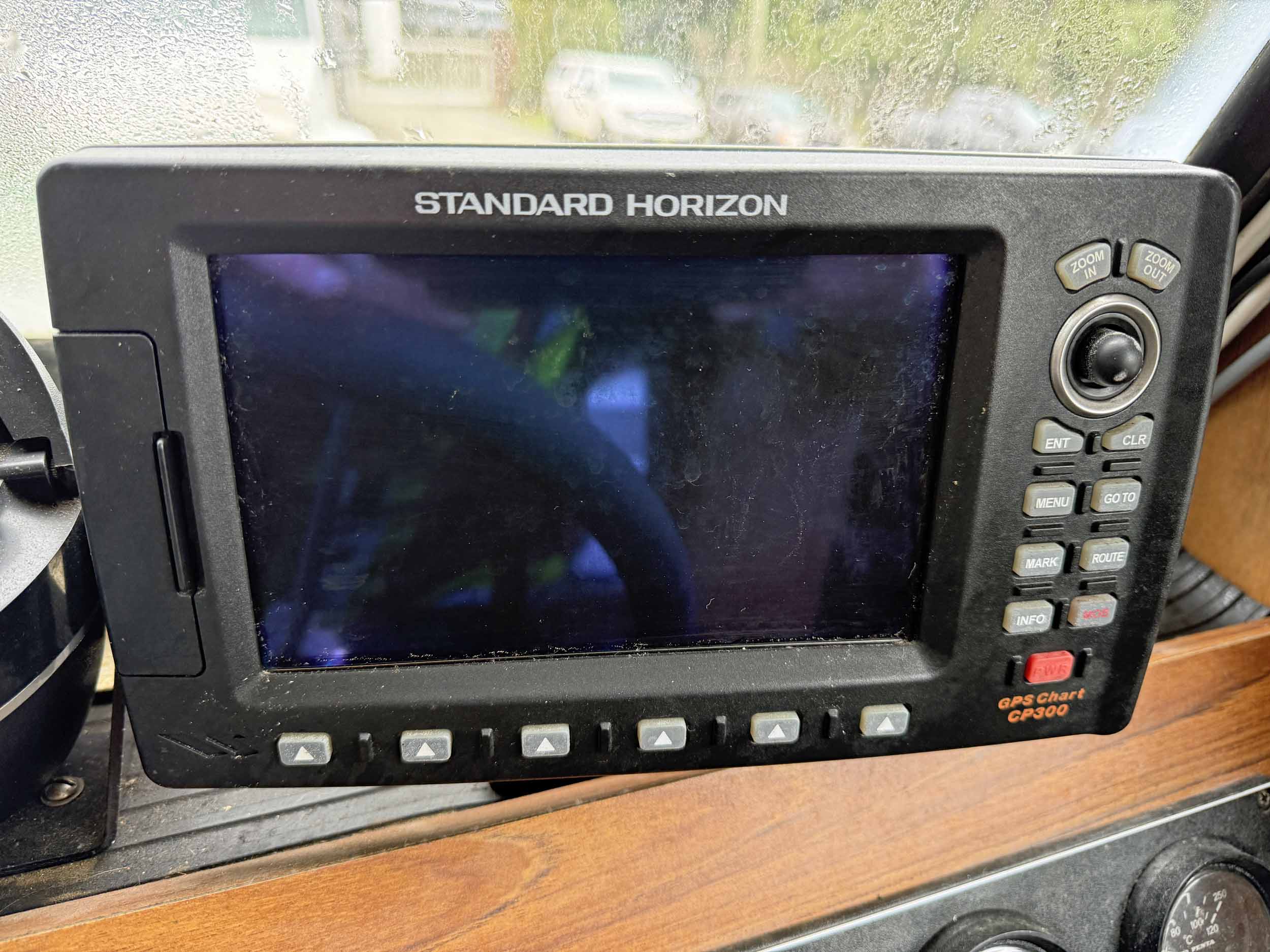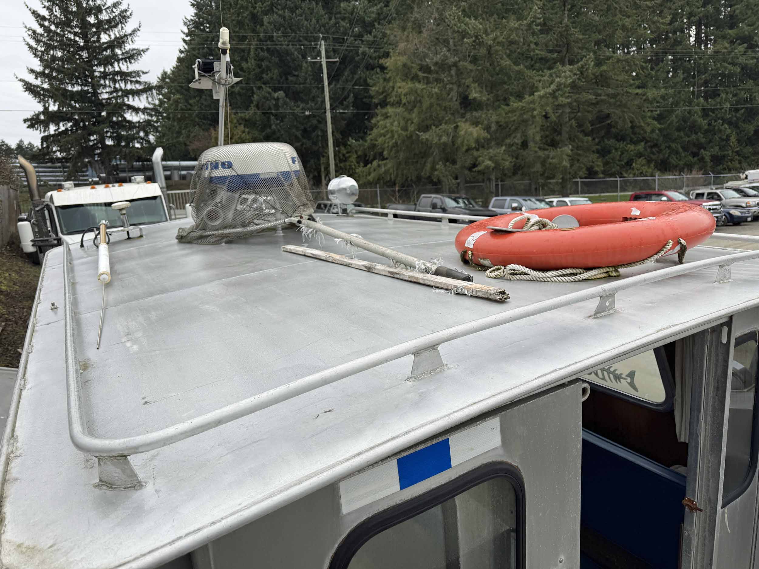 Equipped with bow mounted light package, standard cabin with two windshield wipers, Icom IC-M504 VHF radio, Standard Horizon GPS Chart CP300 chartplotter, Furuno radar, compass, searchlight, Rule bildge pump, Seastar hydraulic steering, trim tabs, cabin heater, swivelling captain’s chair, front passenger seat with storage underneath, port and starboard mounted bench seating, sliding rear cabin door, twin fuel tanks, aux. rear station, Volvo KAD43 engine with Volvo duo prop leg, side and rear deck work lights, navigation lights, down rigger mounts, rod holders, rear swim grid. 2013 Roadstar T/A Aluminum Boat T railer equipped with bunks, Hydrastar trailer brake system, walking beam suspension, 15” steel wheels, 225/75R15 tires.