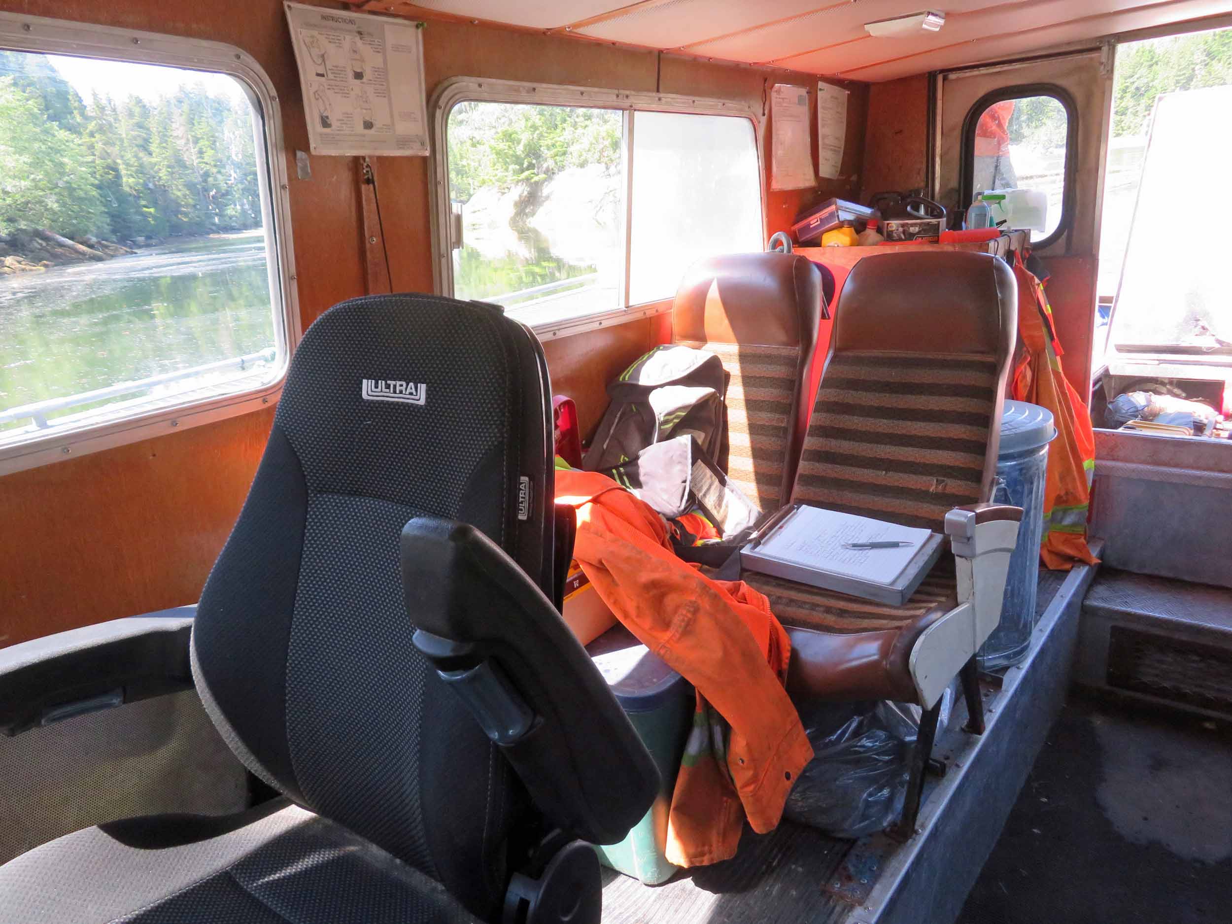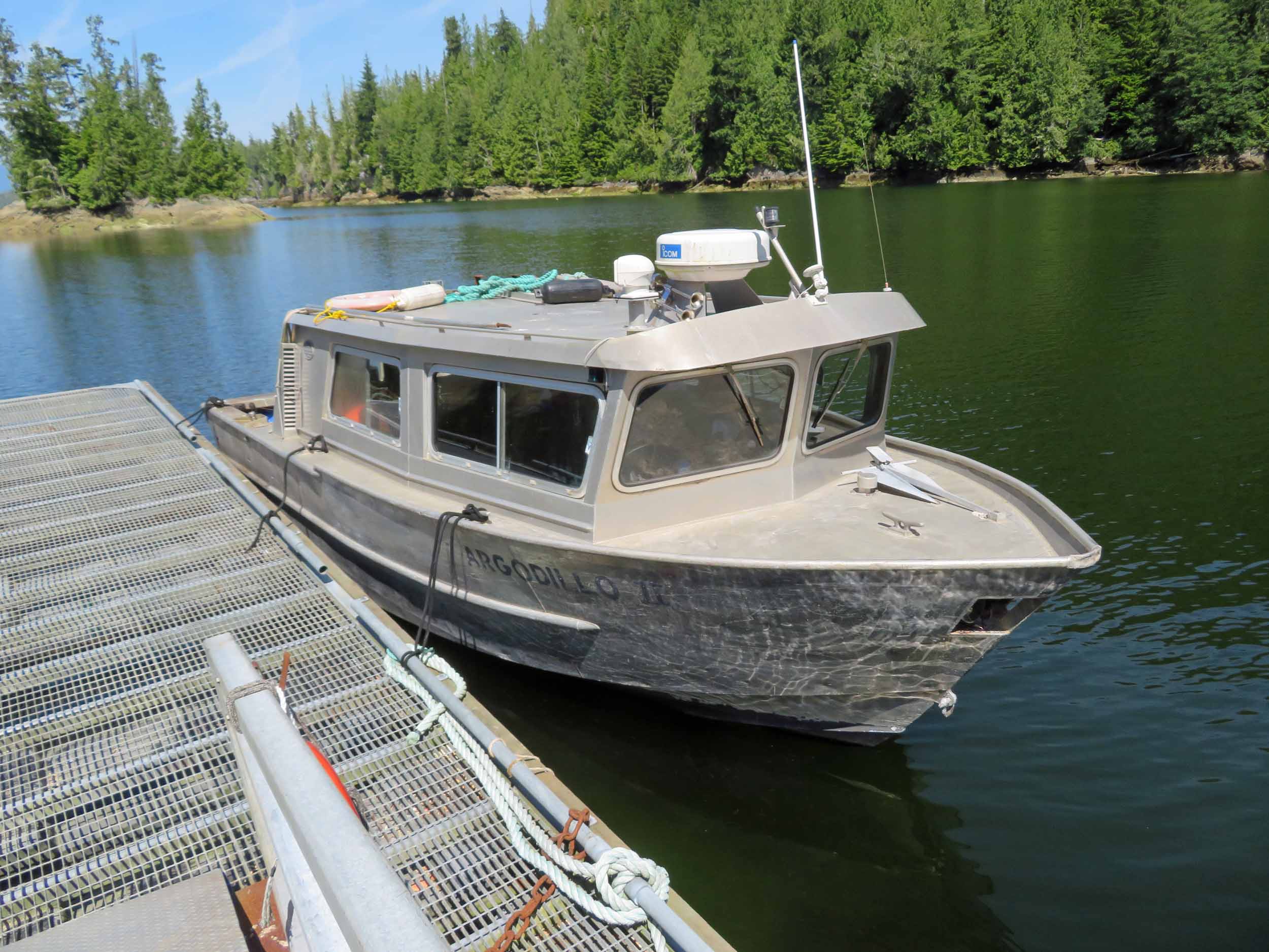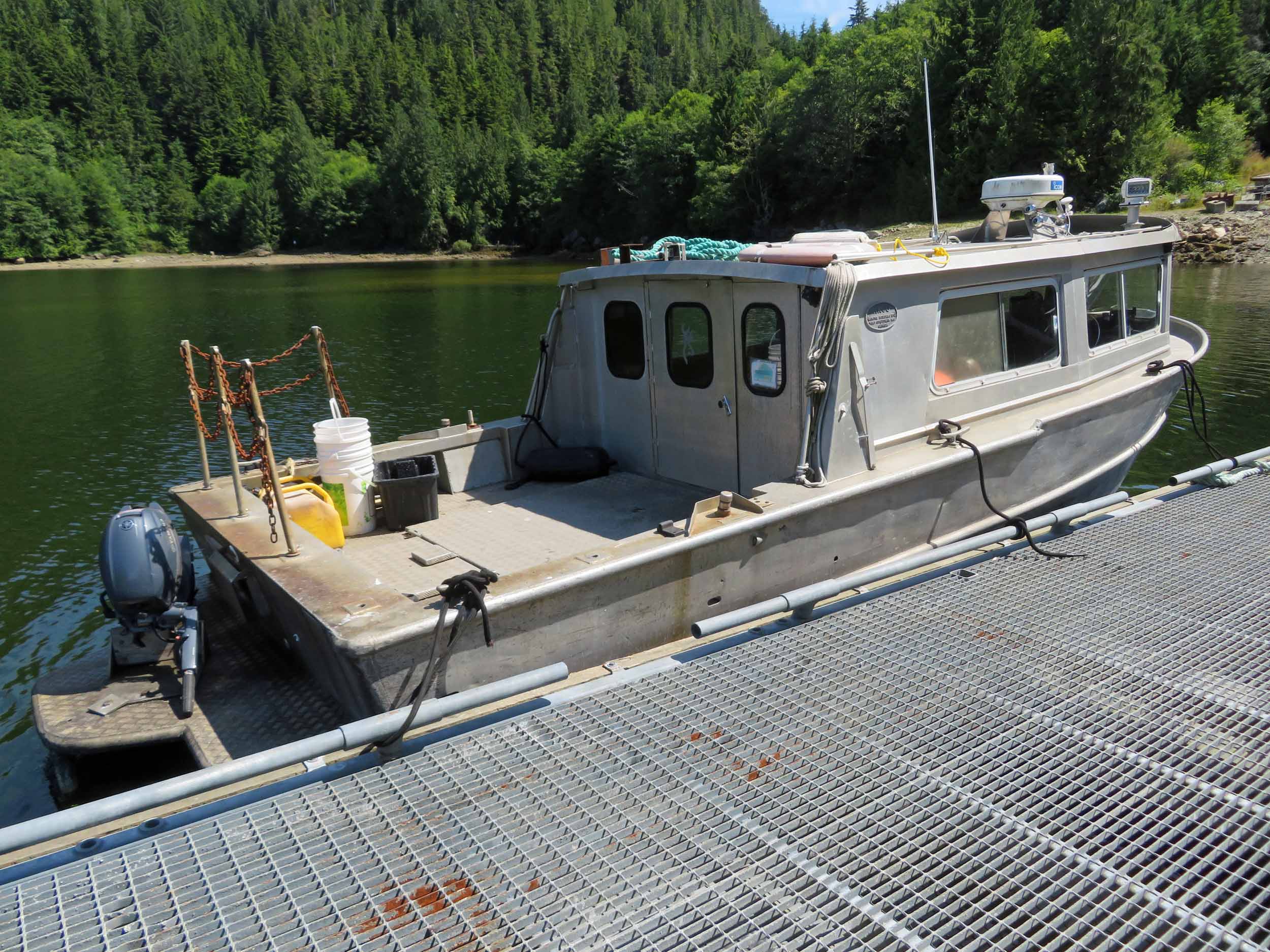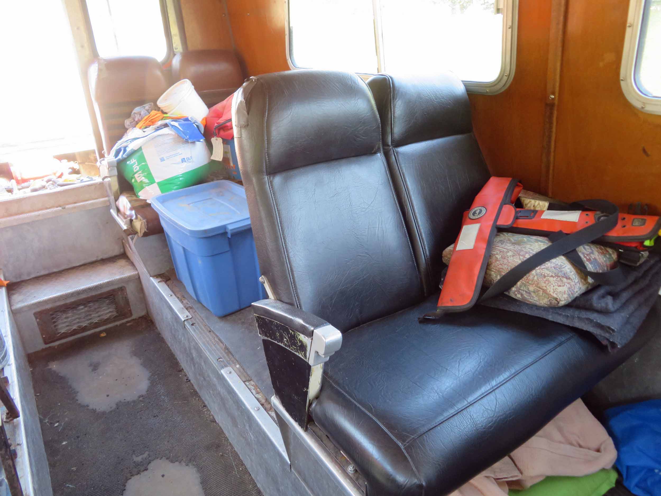 Equipped with Icom radar, Standard Horizon GPS ChartCP180 chartplotter, searchlight, dual bilge pumps, Furuno Echo sounder, trim tabs, marine VHF radio, camp VHF radio, Ultra Air Ride captain’s seat, 8 passenger capacity, s of covered storage capacity, Caterpillar C7.1 (400hp) engine, Twin Disc MG509 marine transmission with Centa flex coupling, straight shaft, 21” prop, removable tow post, Yamaha 9.9hp auxiliary outboard on manual swiveling bracket.