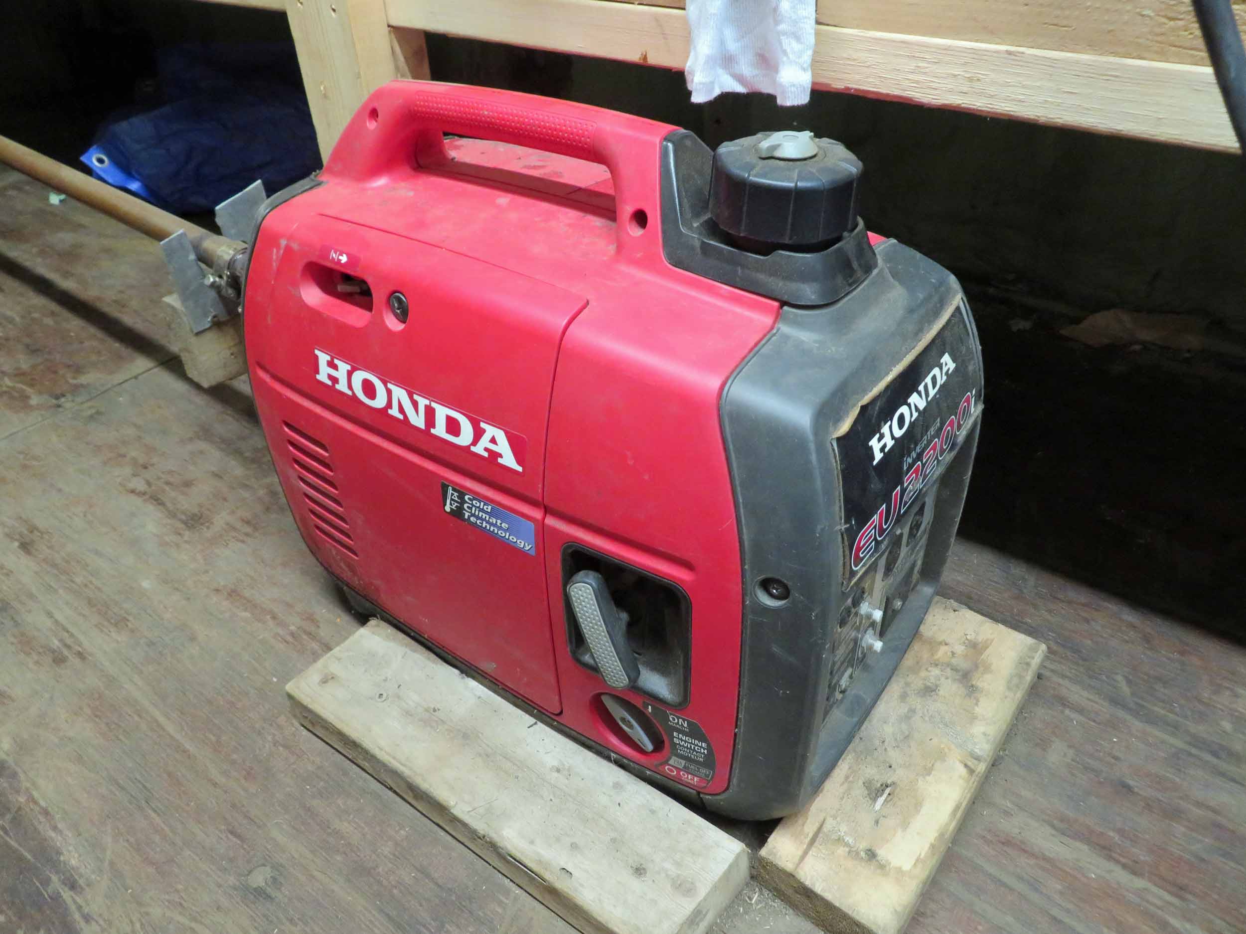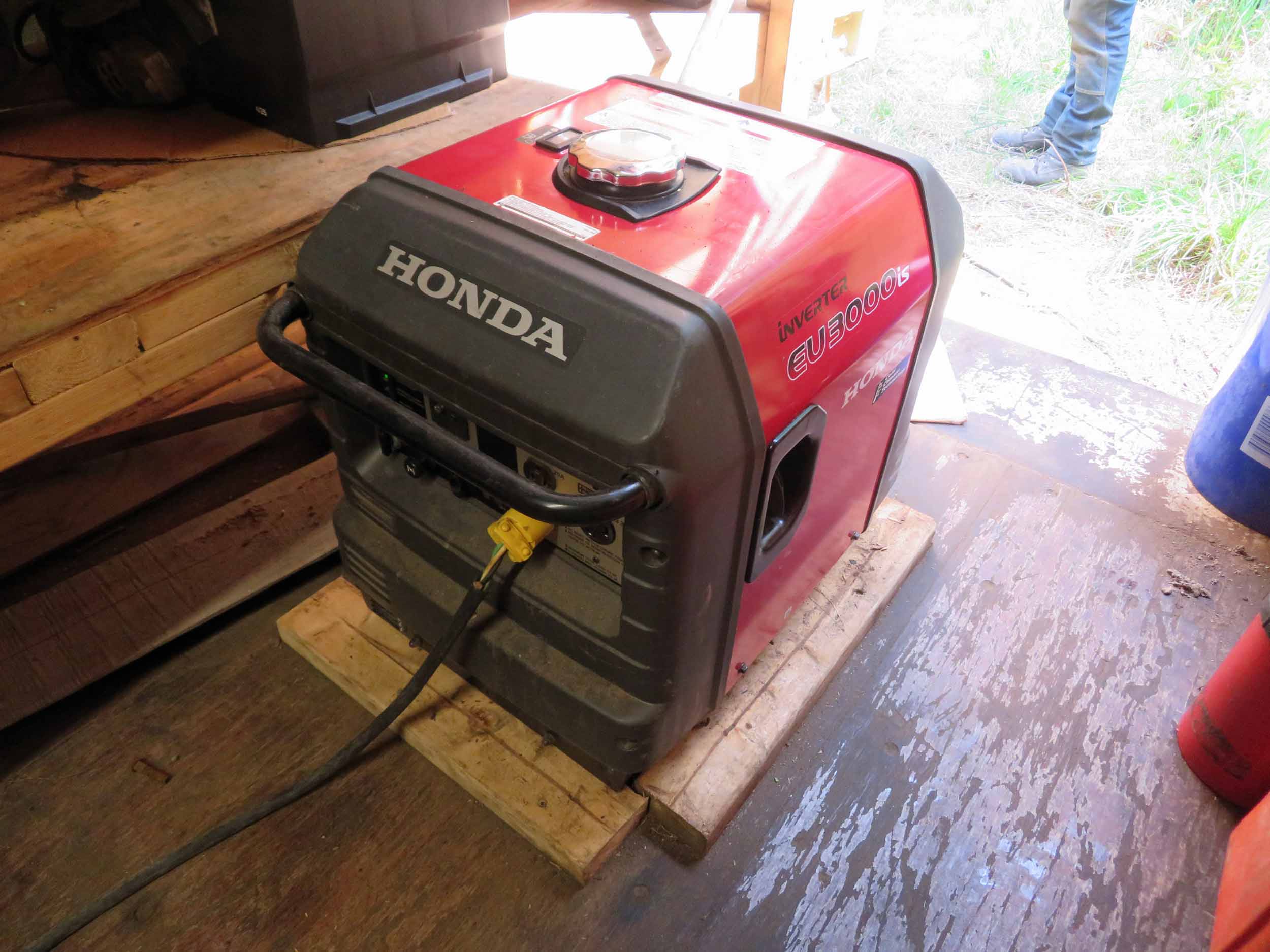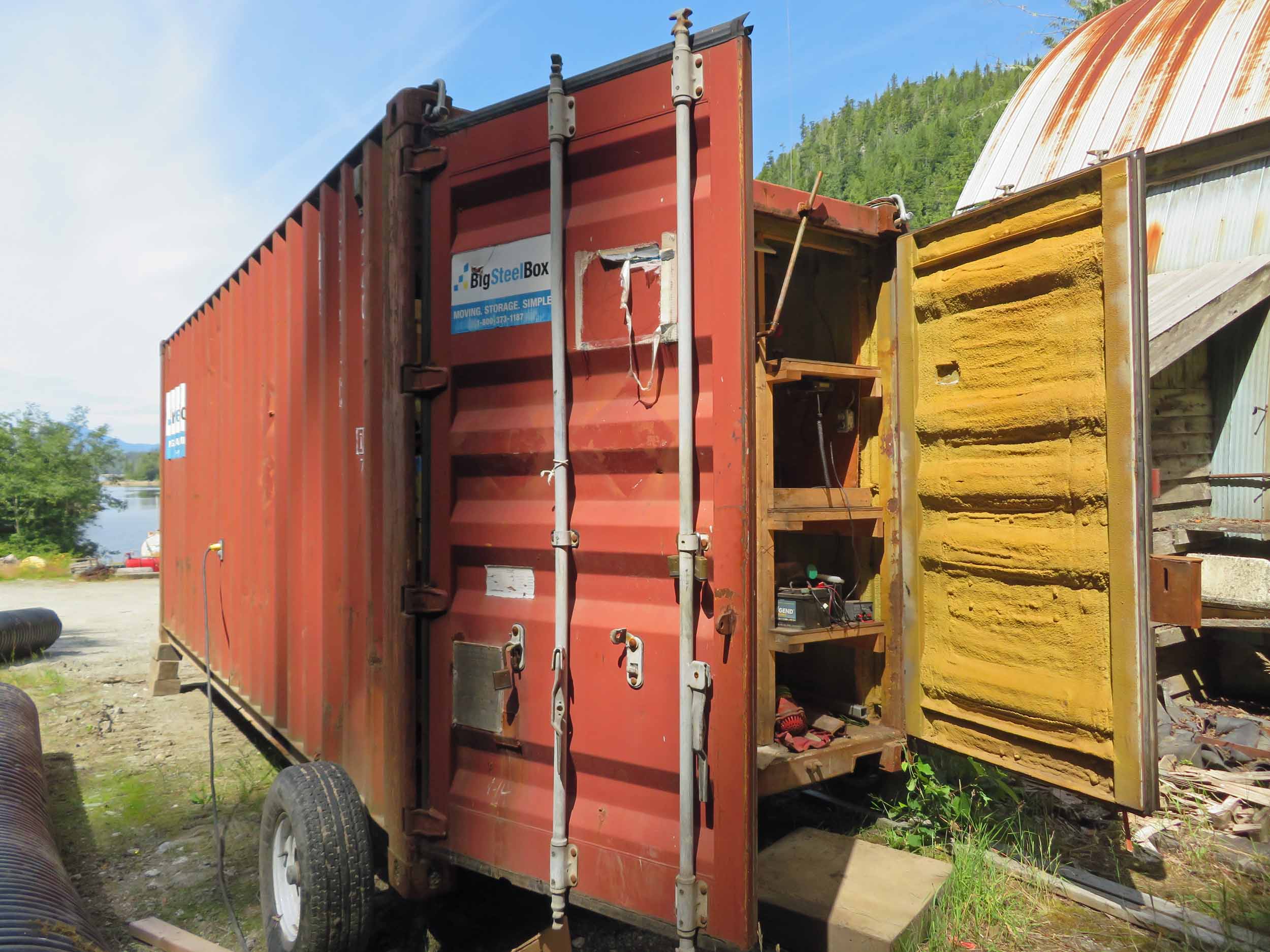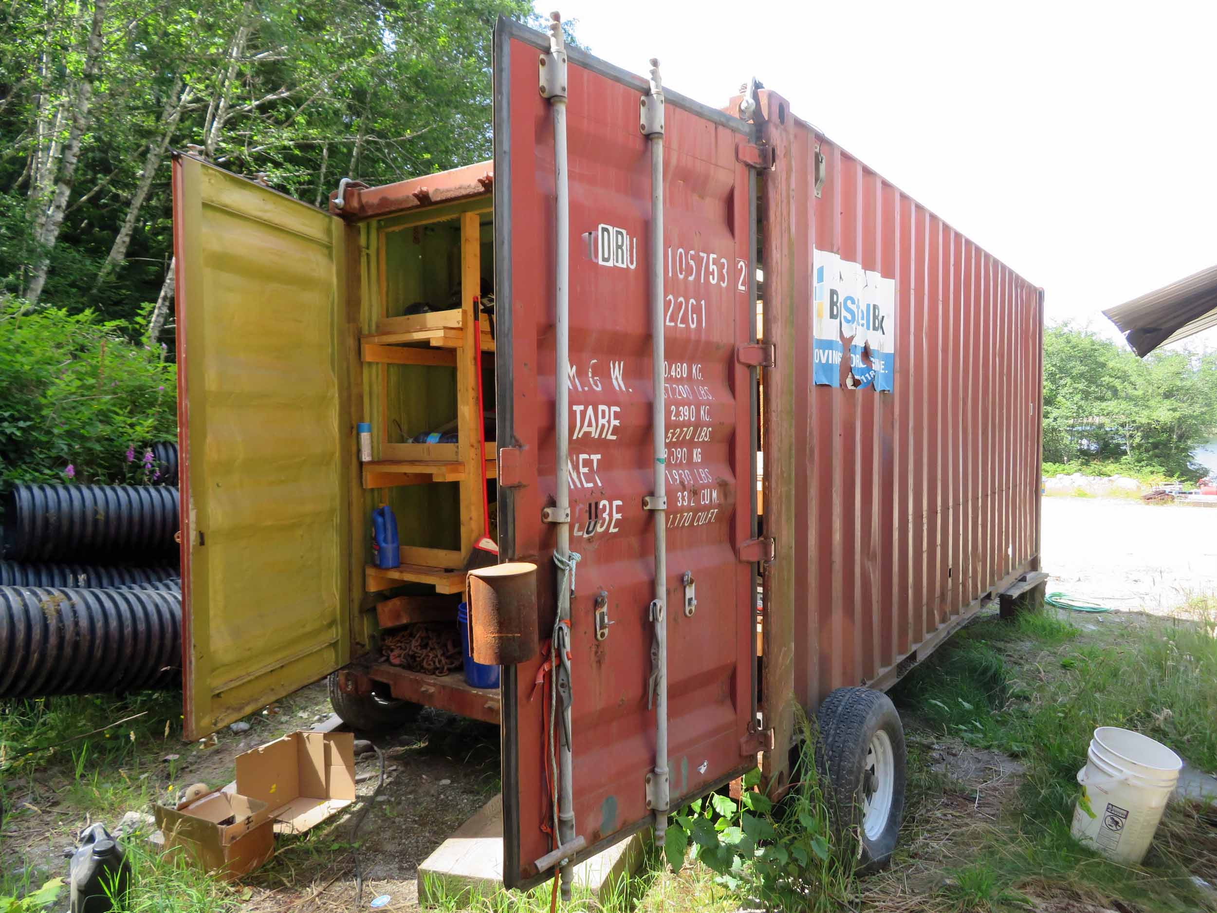 Equipped with lifting strap, removable wheels and tires, spray formed interior, wooden parts shelves, wired for lights & power outlets, Honda EU2200 gas powered suitcase generator, Honda EU3000iS gas powered generator, inventory of parts and consumables to work in a remote area.