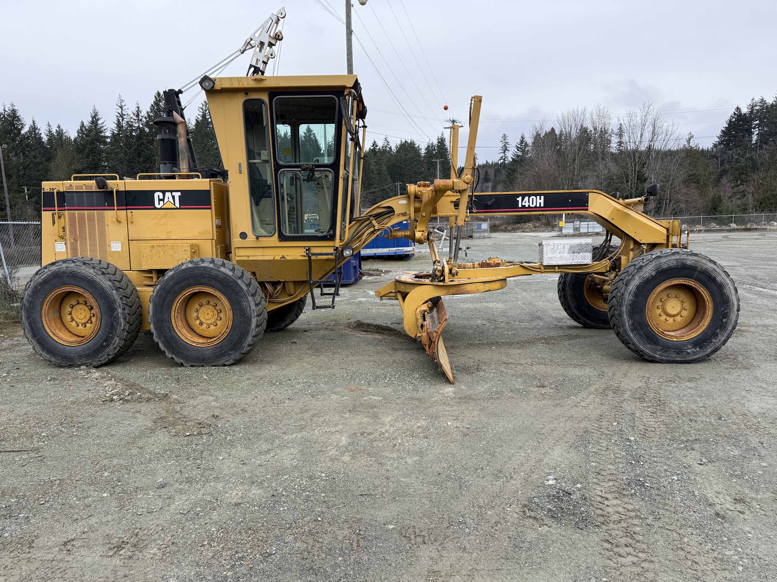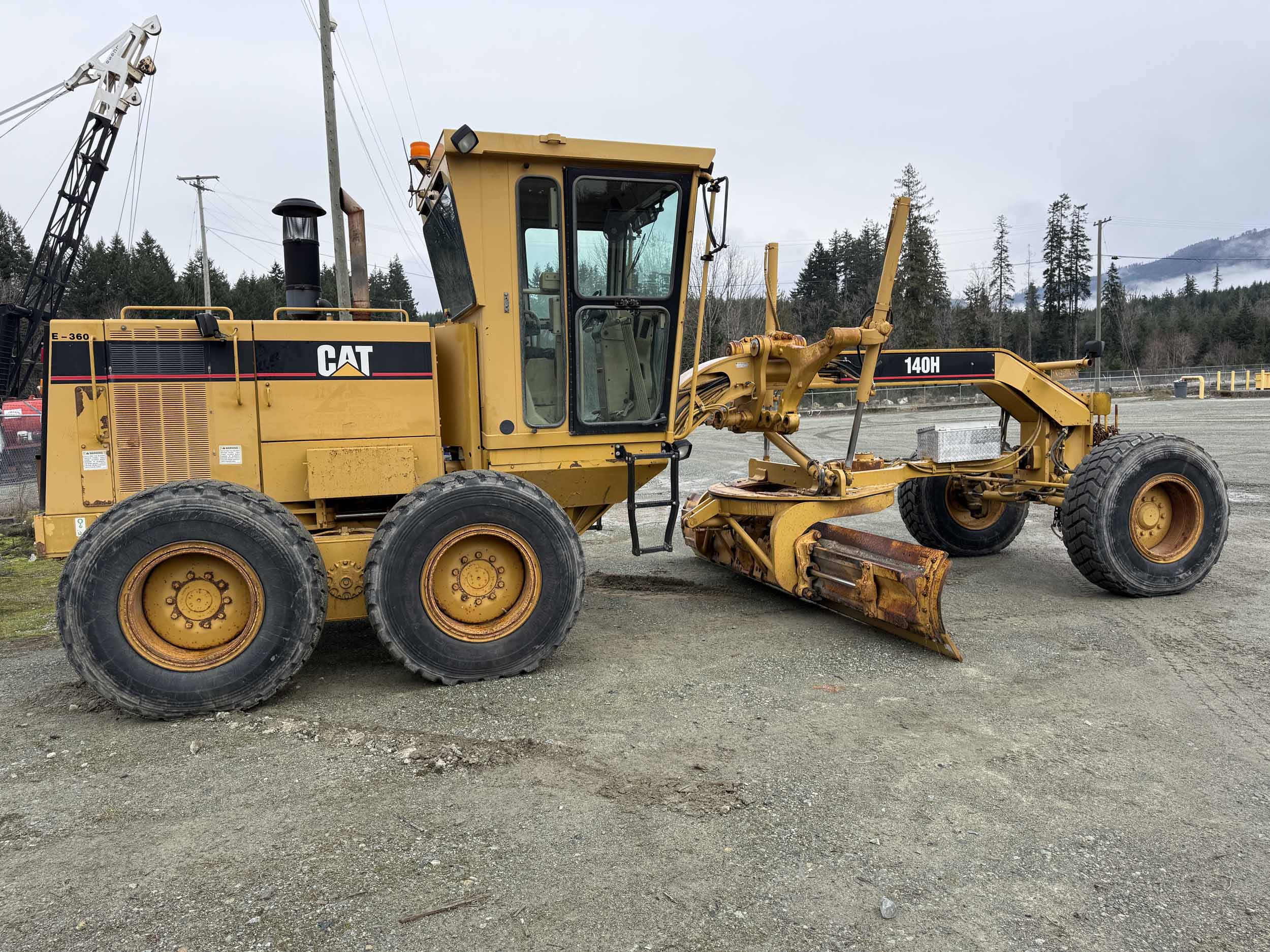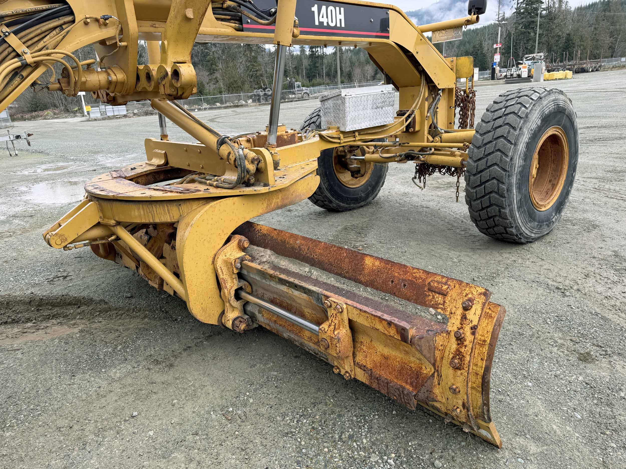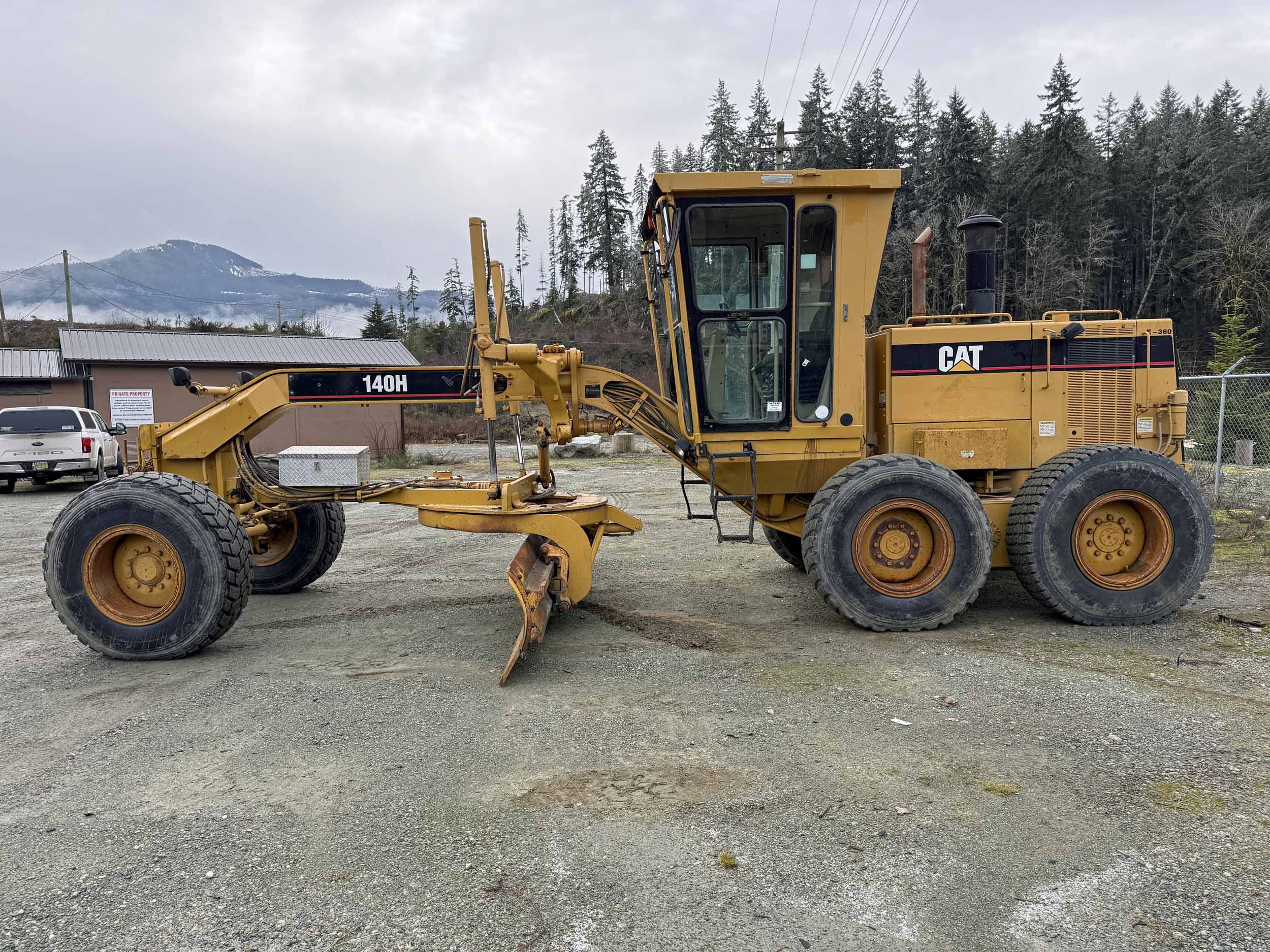 Equipped with 17.5R25 front tires, 14′ main blade, ROPS cab w/ AC, 17.5R25 rear tires.