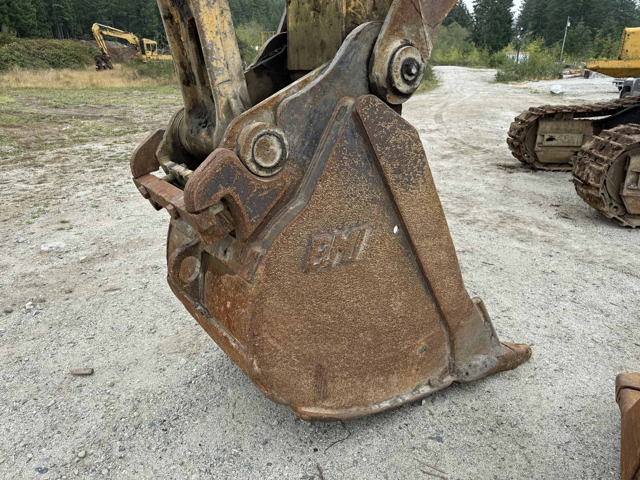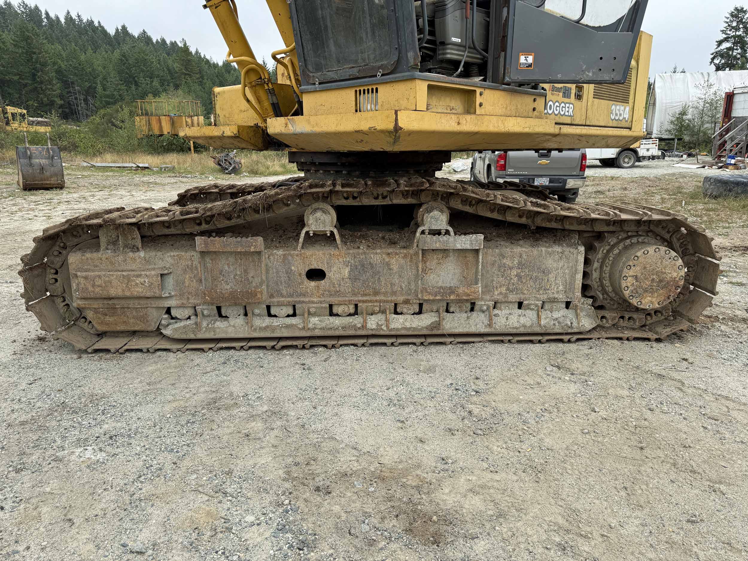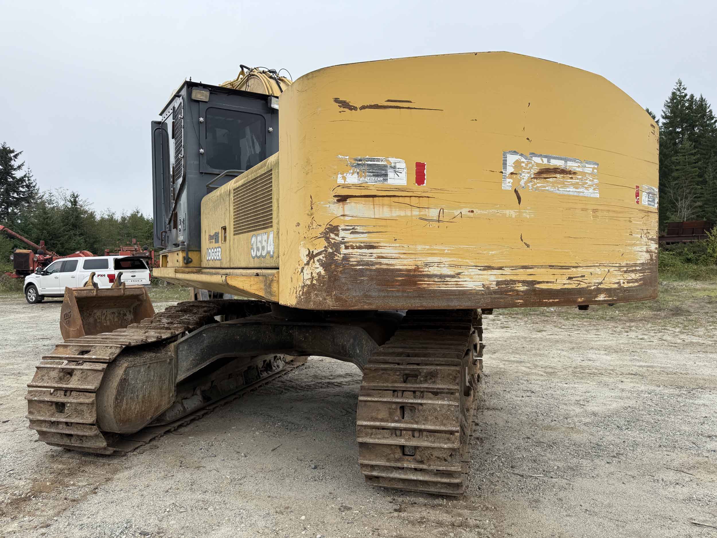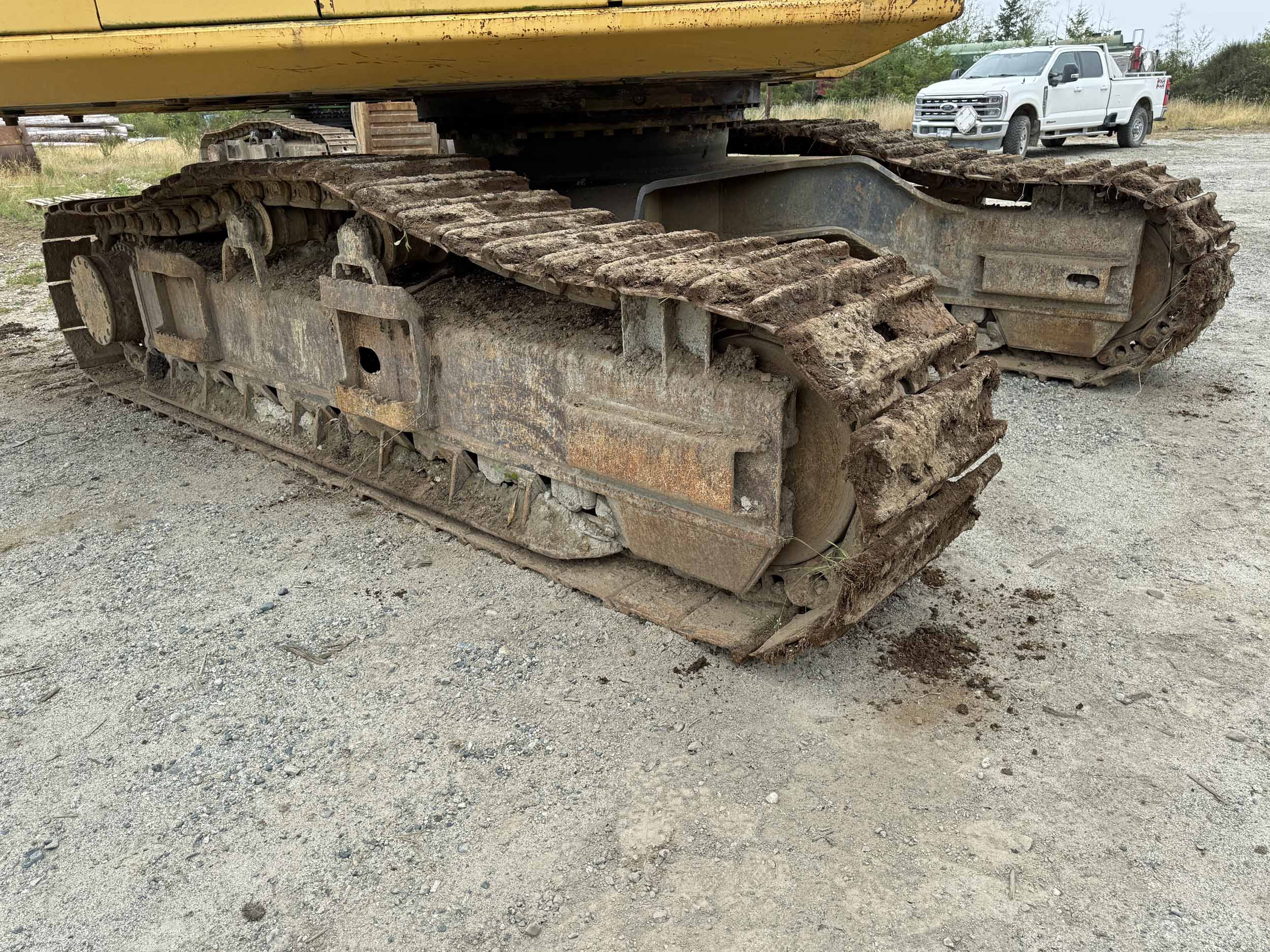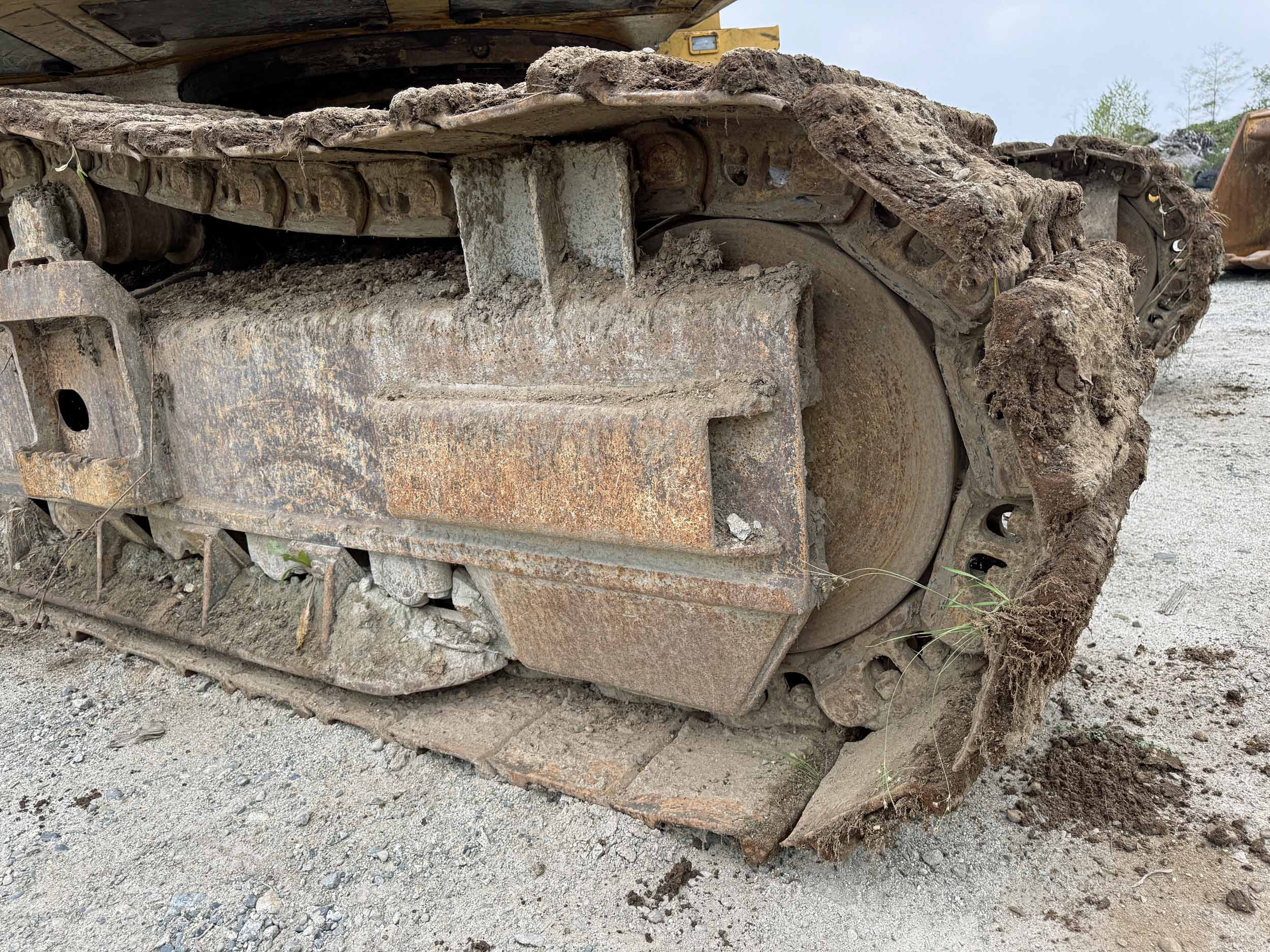 Equipped with 40” BMI dig bucket with four teeth, 64” CWS HD clean up bucket with six teeth, CWS manual quick coupler, CWS hydraulic thumb, hoe front, forestry cab on 8” riser, forestry guarding package, highwalker undercarriage with 28” double bar pads.