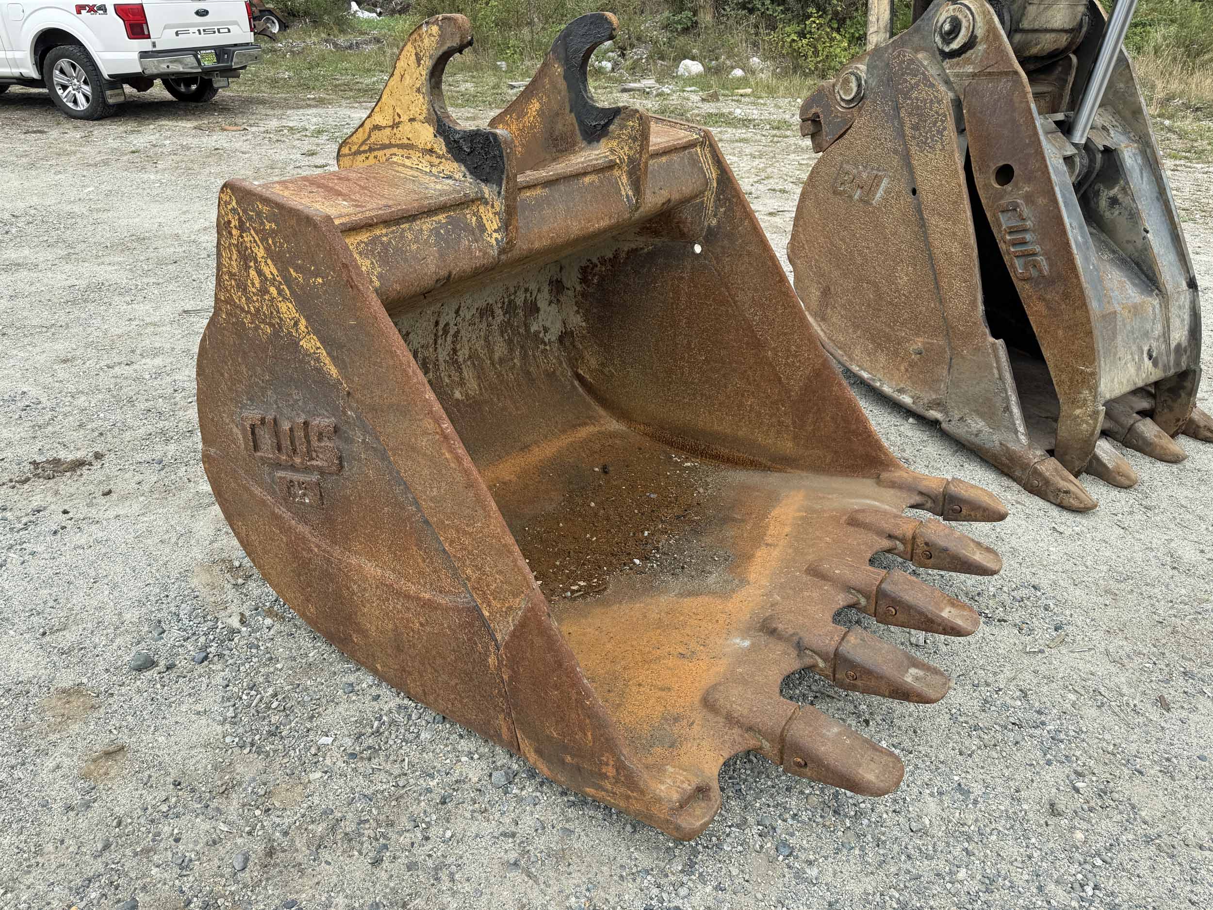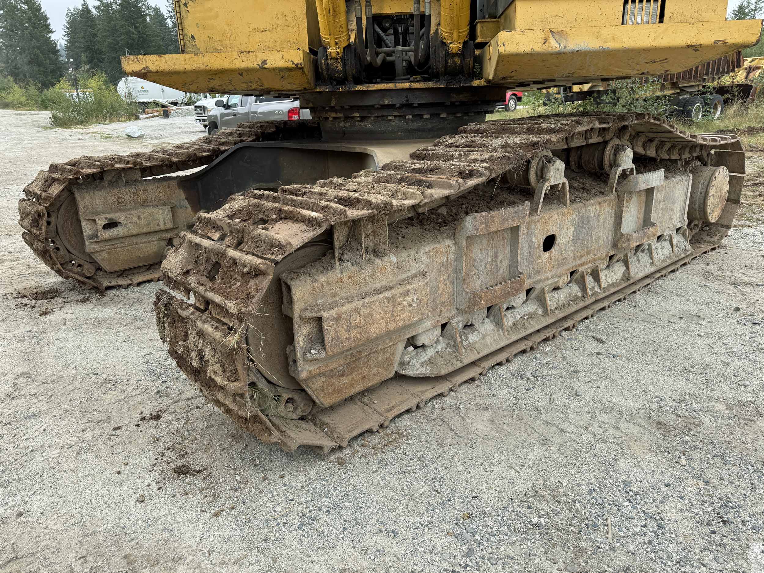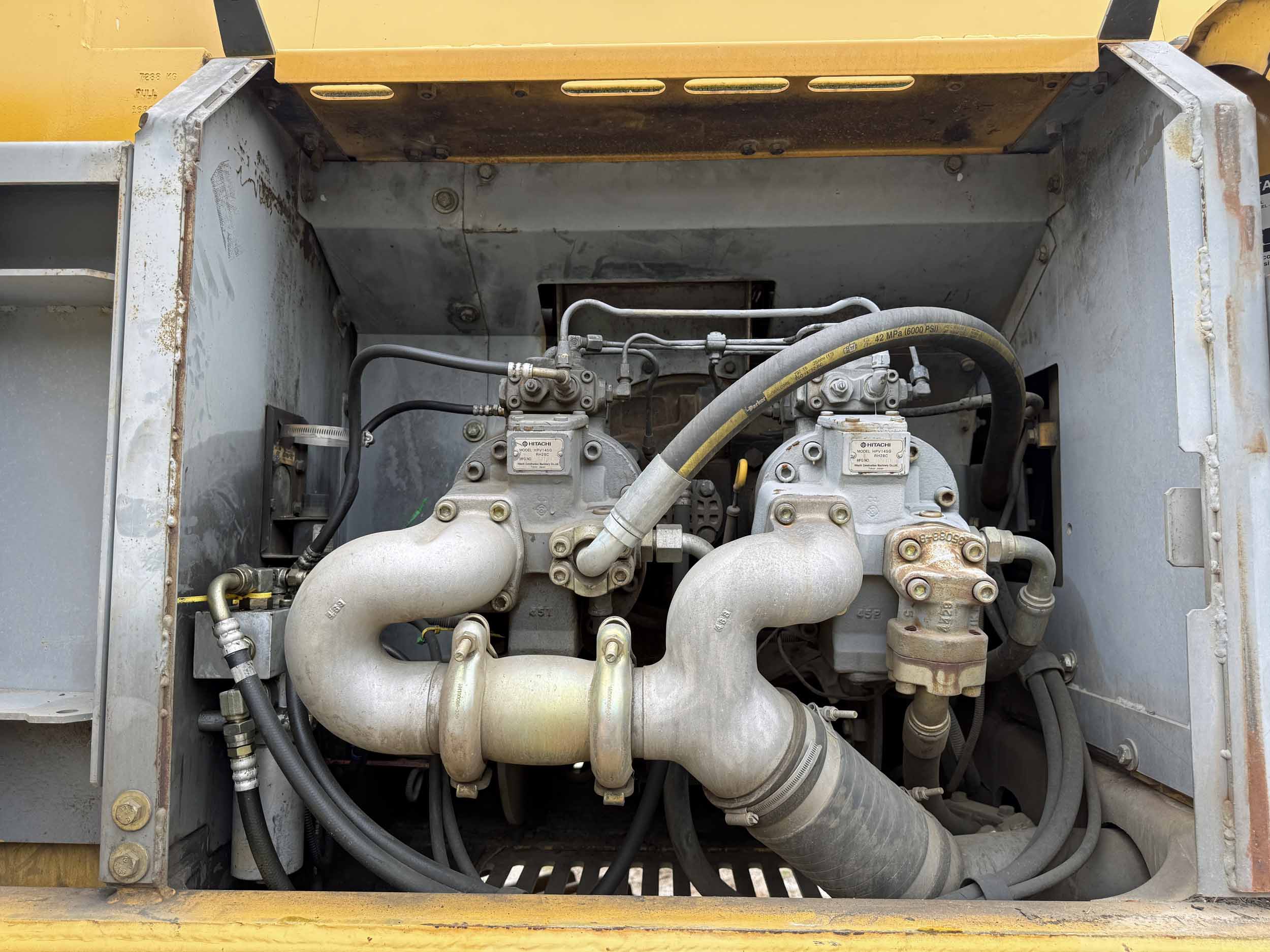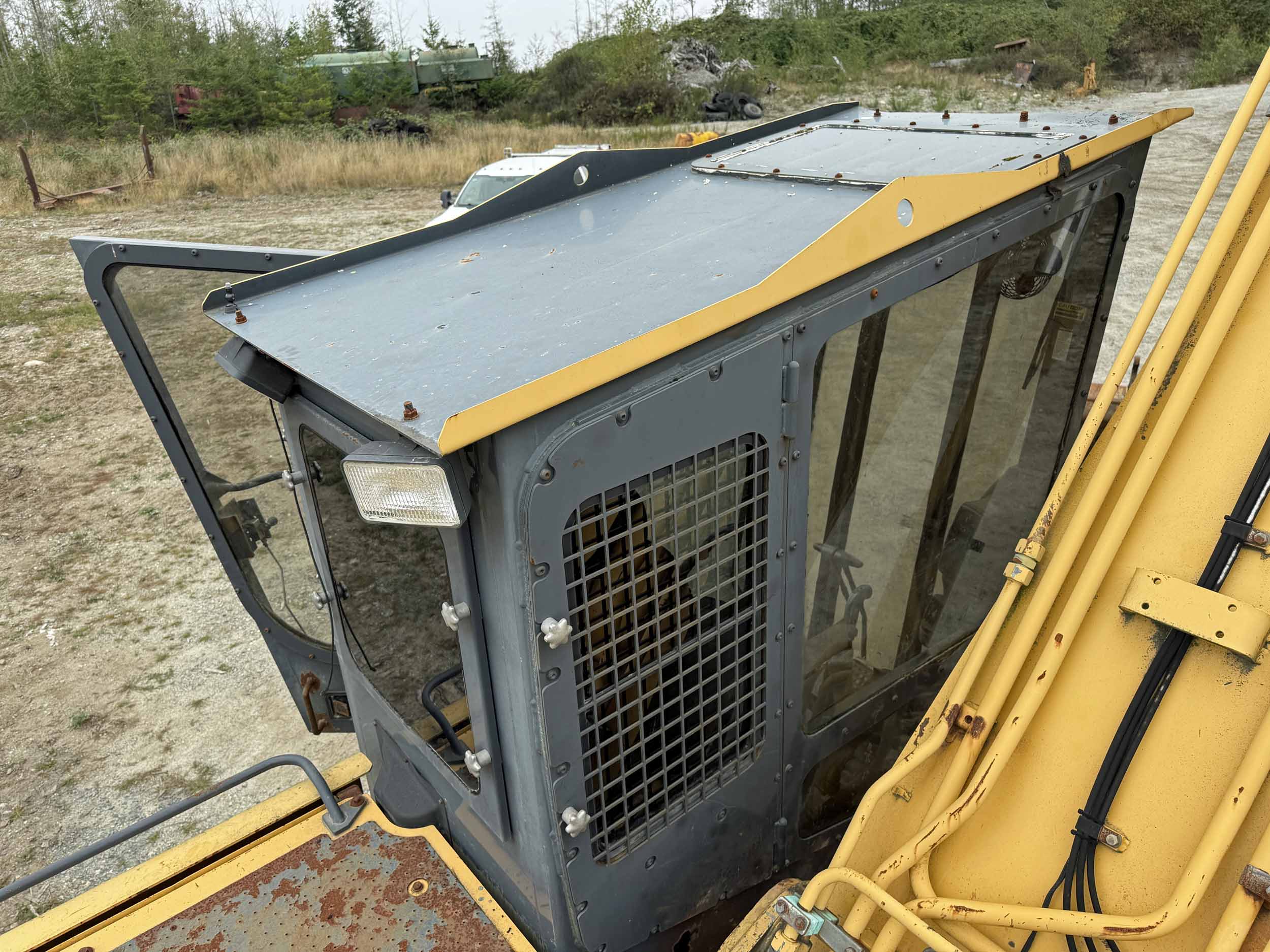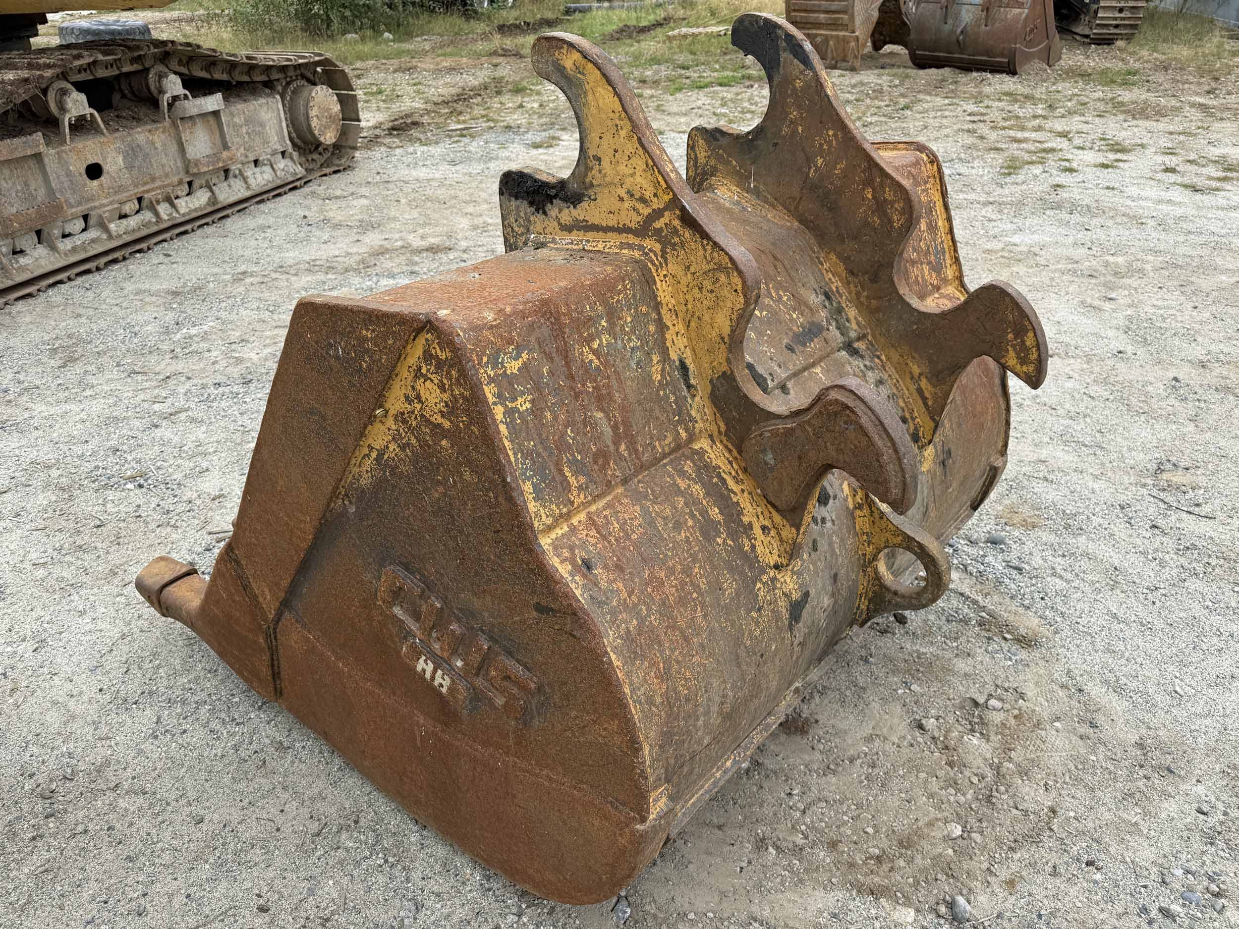 Equipped with 40” BMI dig bucket with four teeth, 64” CWS HD clean up bucket with six teeth, CWS manual quick coupler, CWS hydraulic thumb, hoe front, forestry cab on 8” riser, forestry guarding package, highwalker undercarriage with 28” double bar pads.