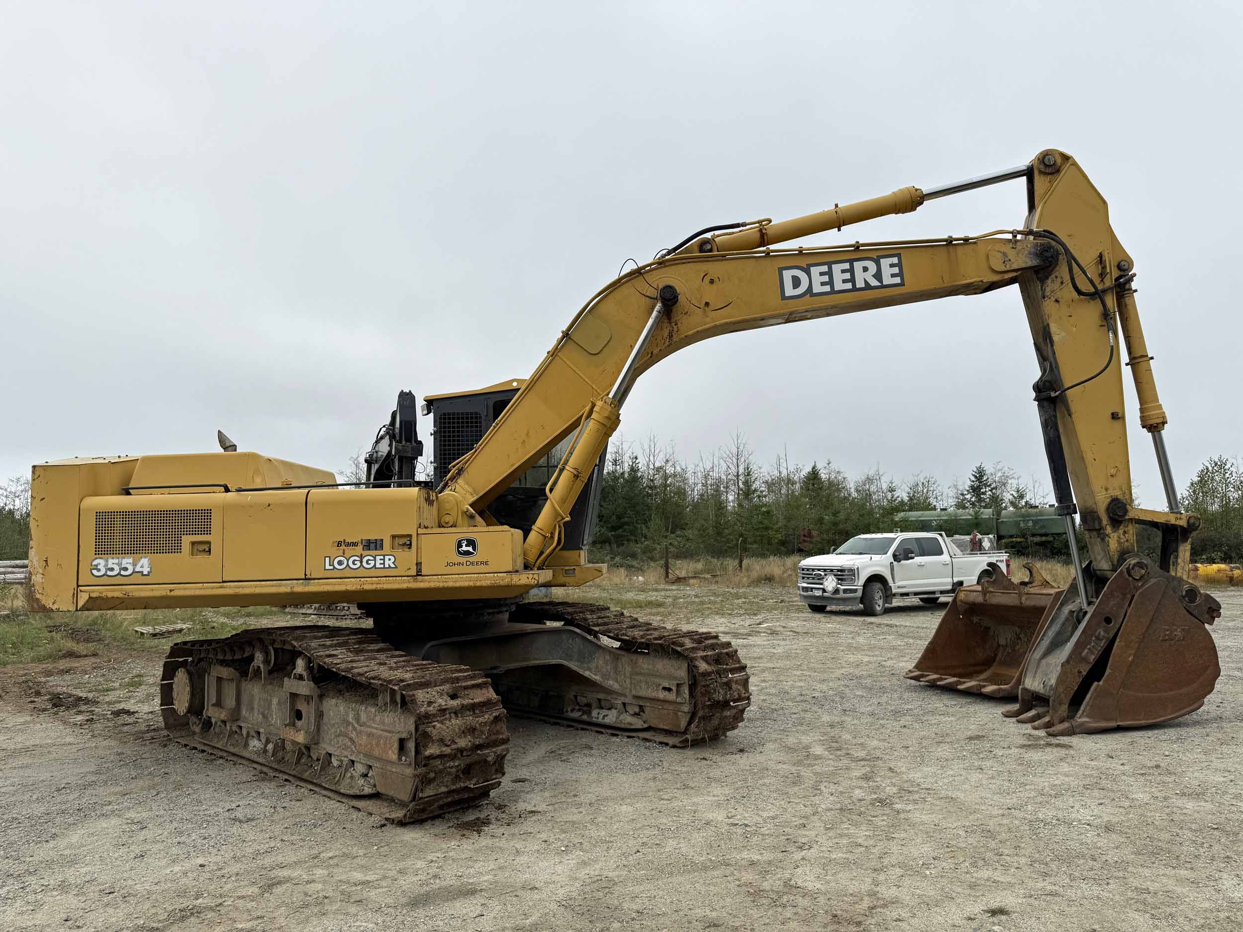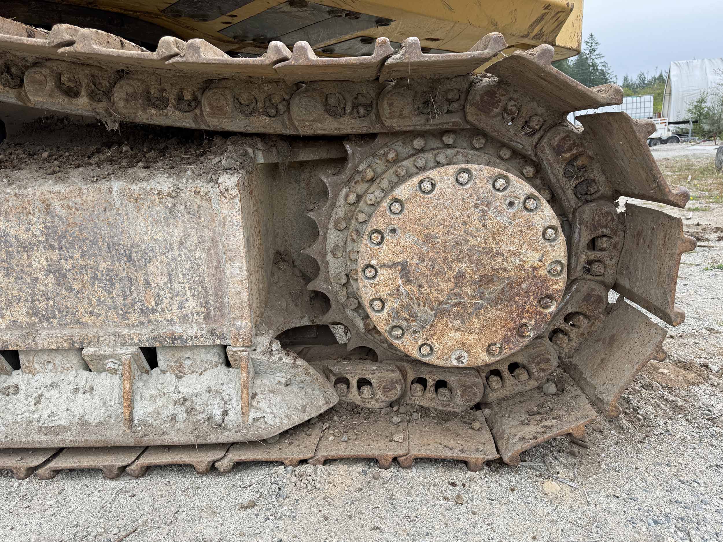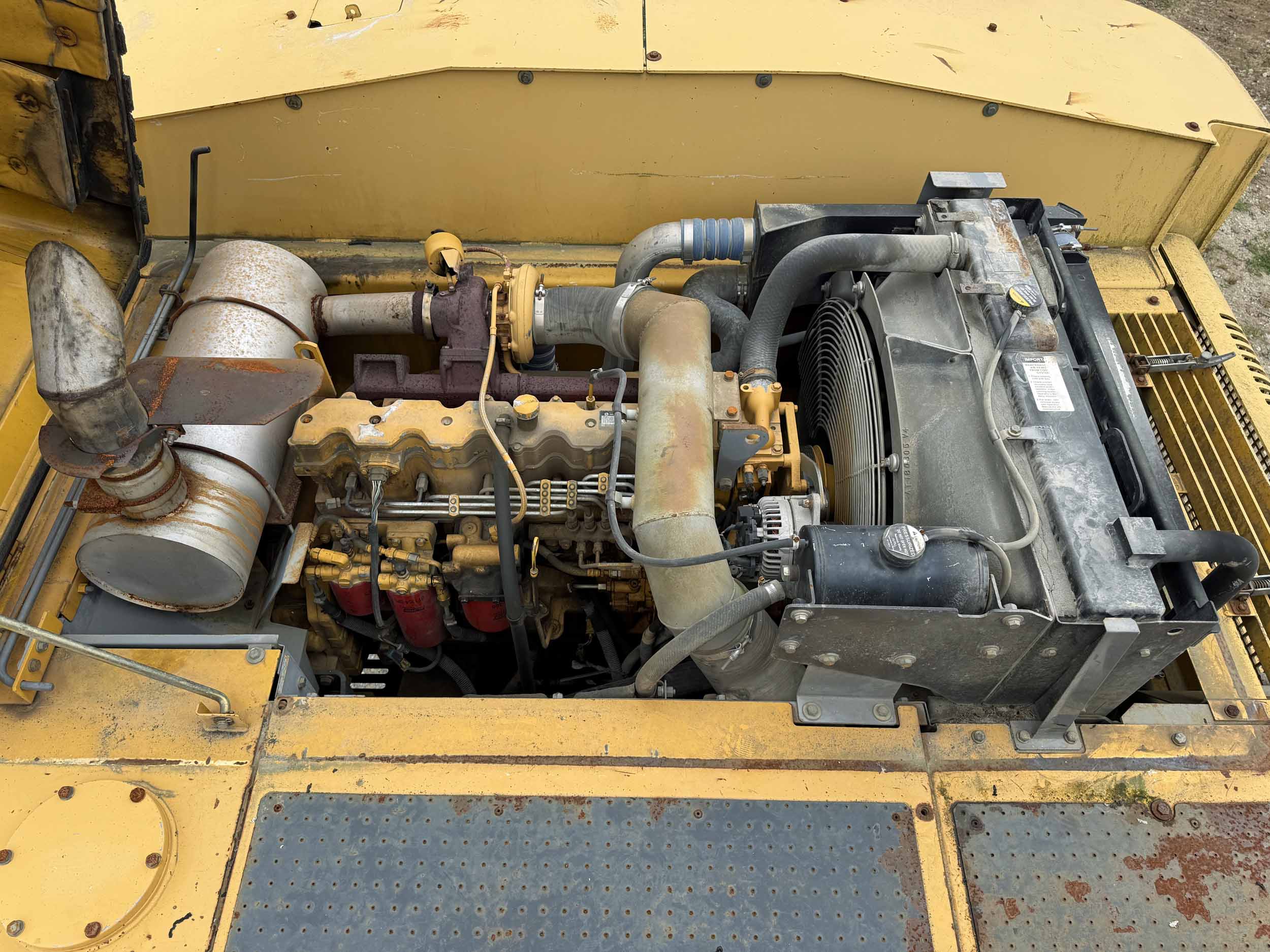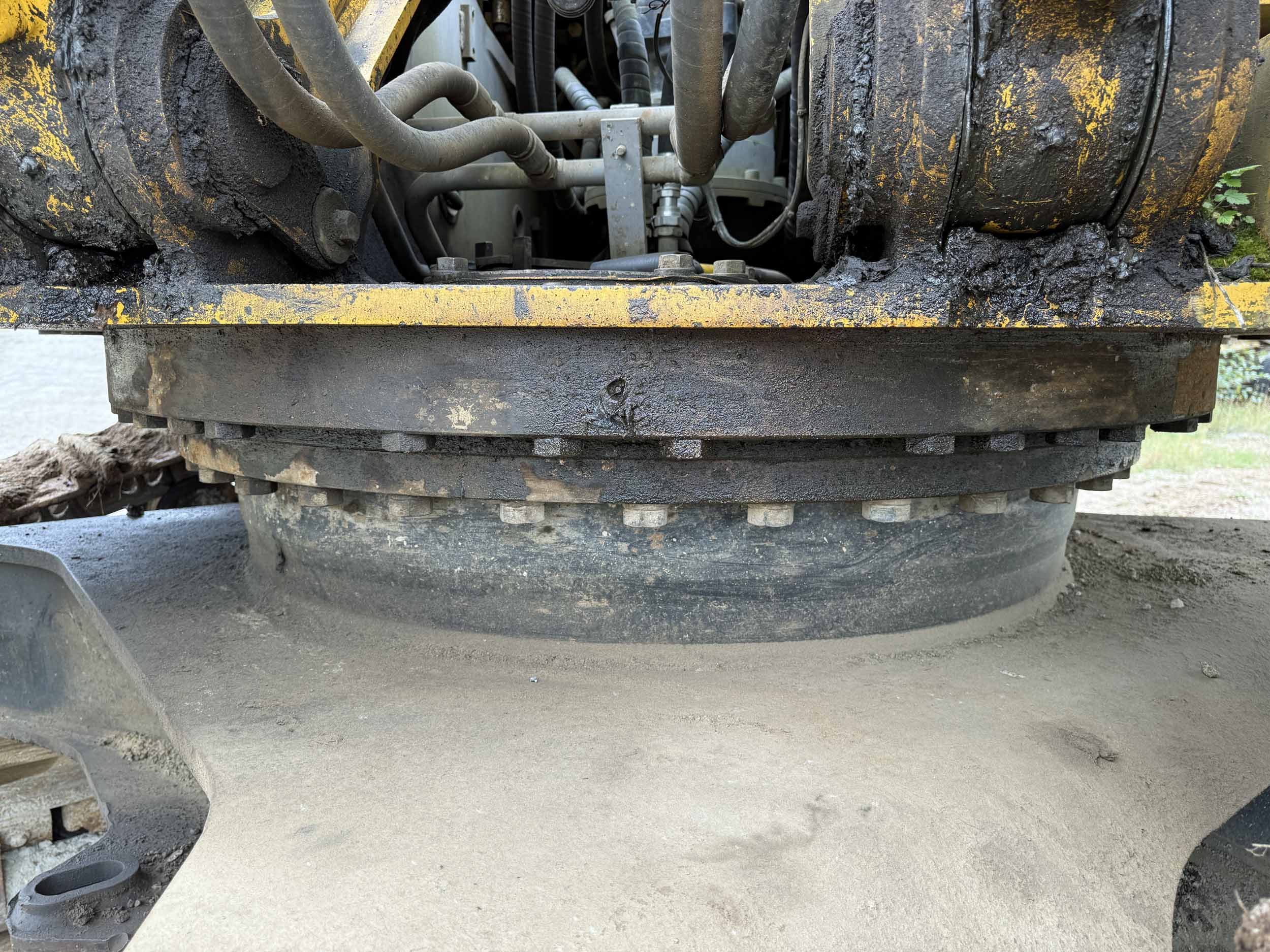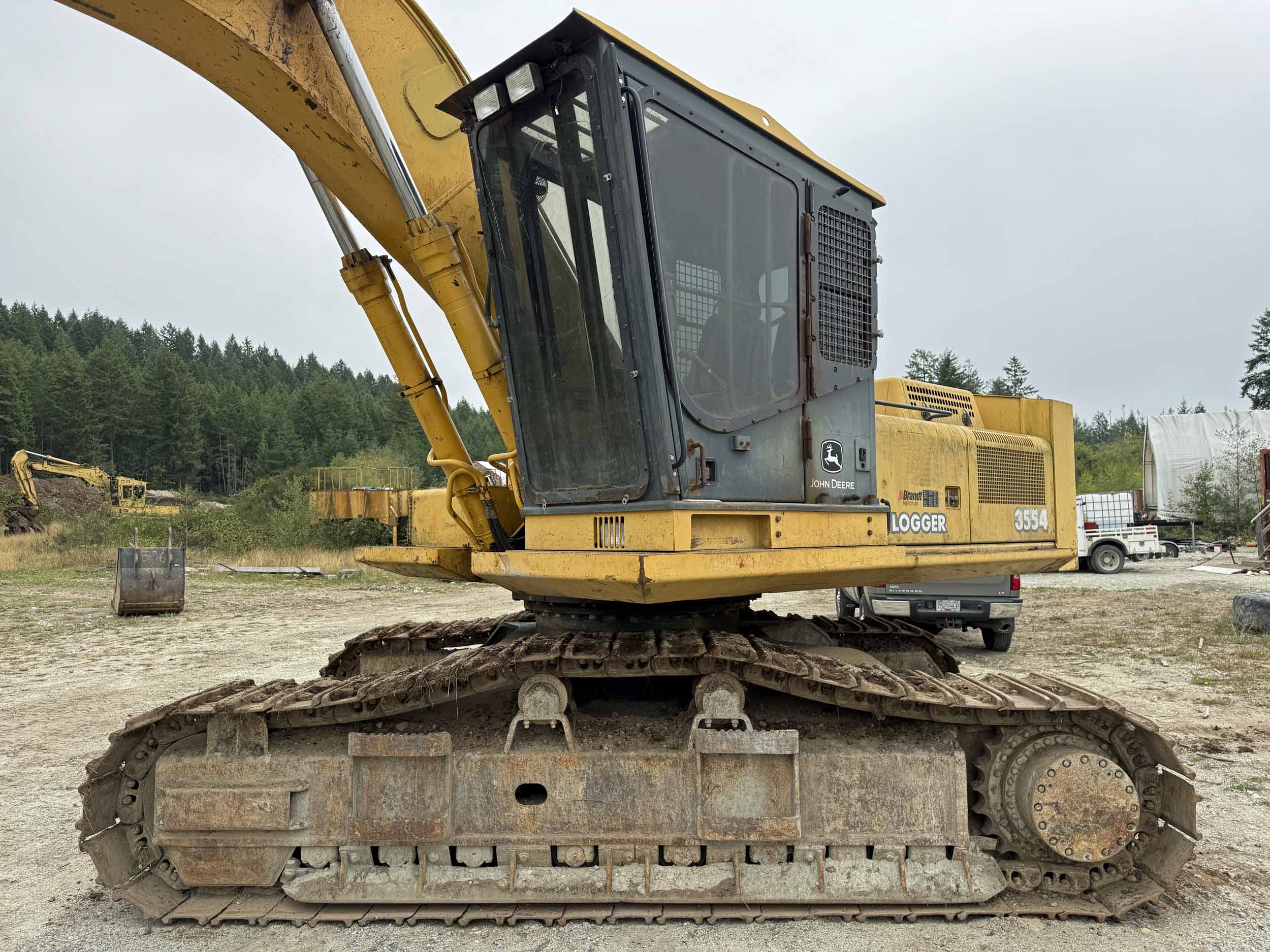 Equipped with 40” BMI dig bucket with four teeth, 64” CWS HD clean up bucket with six teeth, CWS manual quick coupler, CWS hydraulic thumb, hoe front, forestry cab on 8” riser, forestry guarding package, highwalker undercarriage with 28” double bar pads.