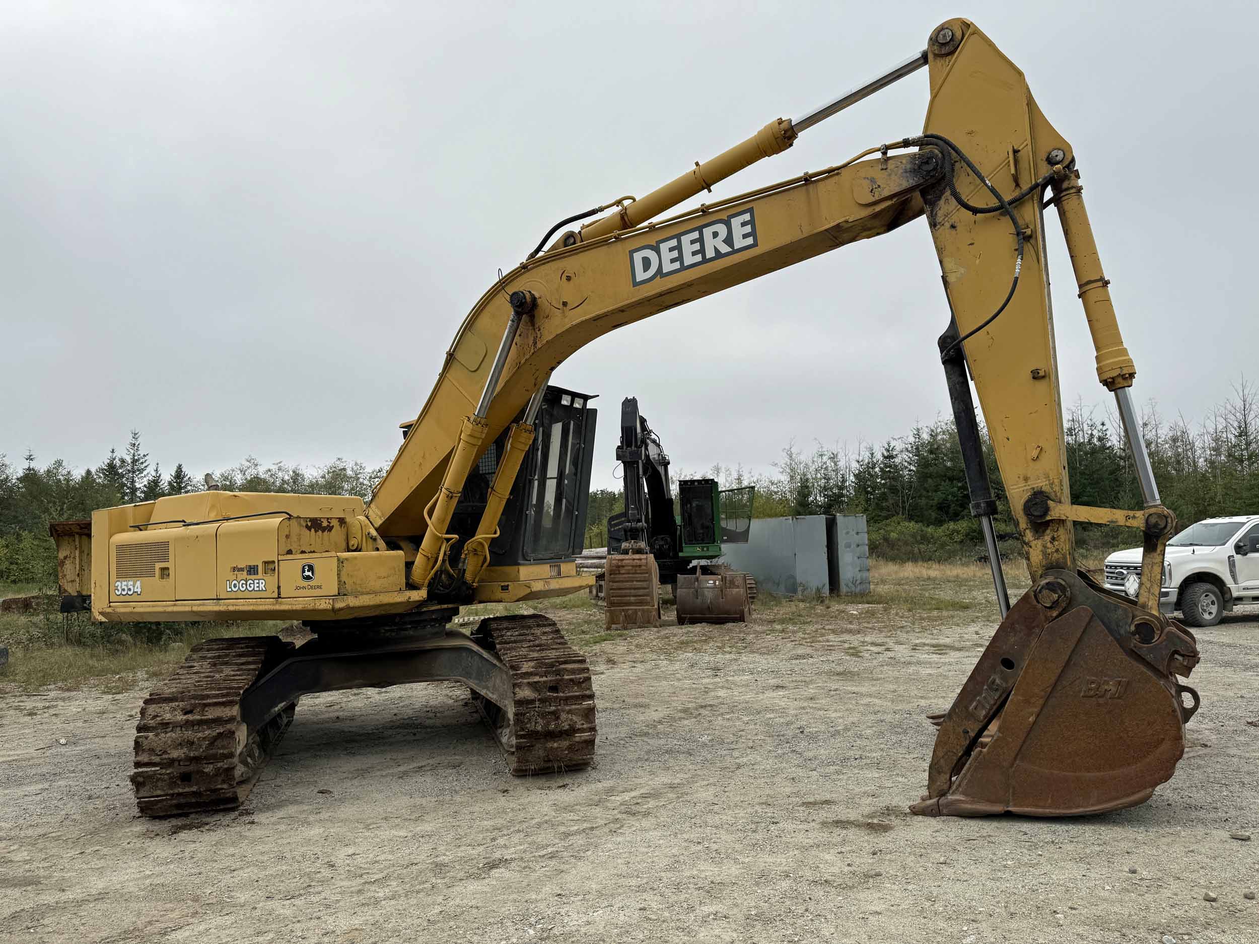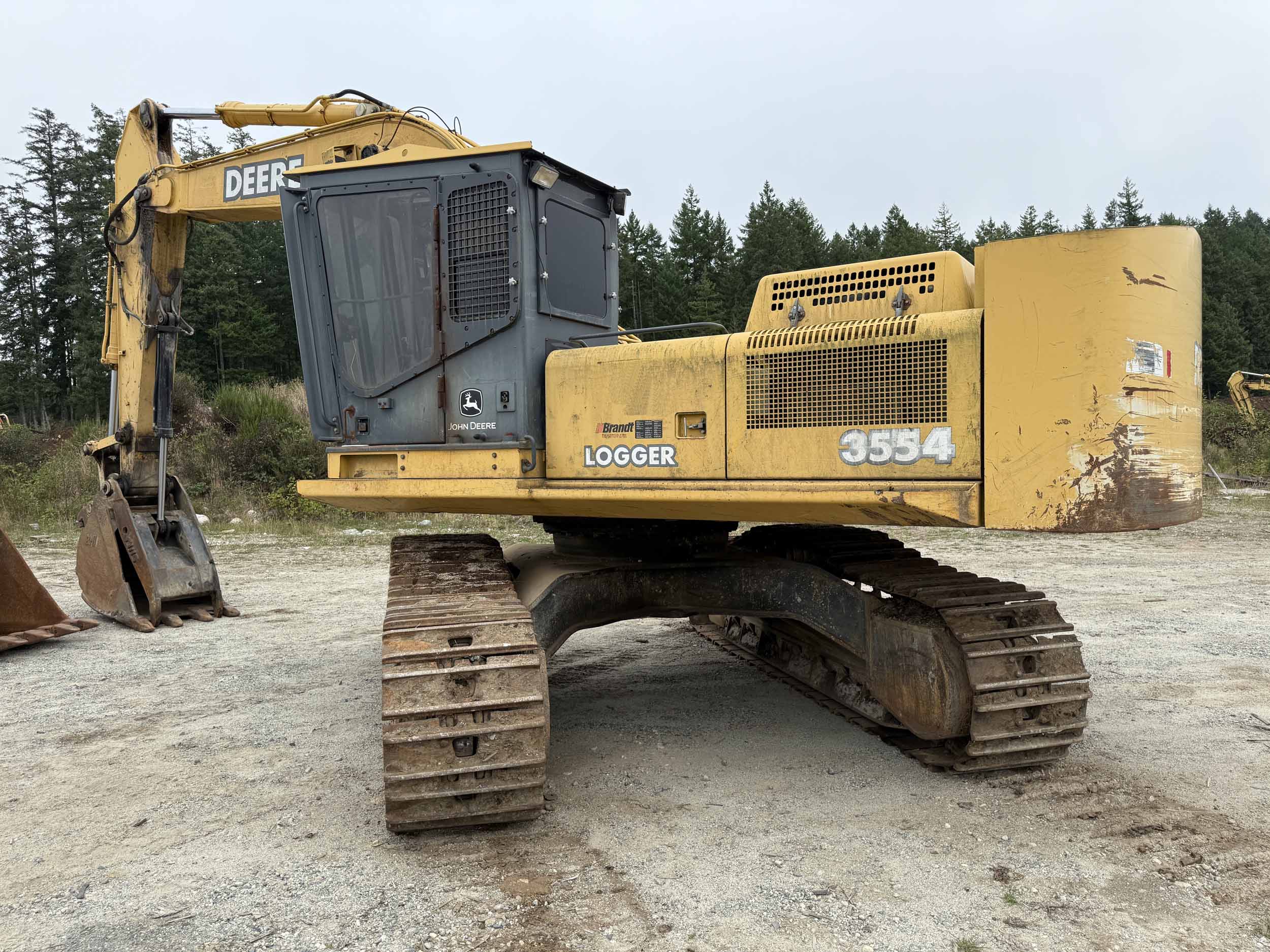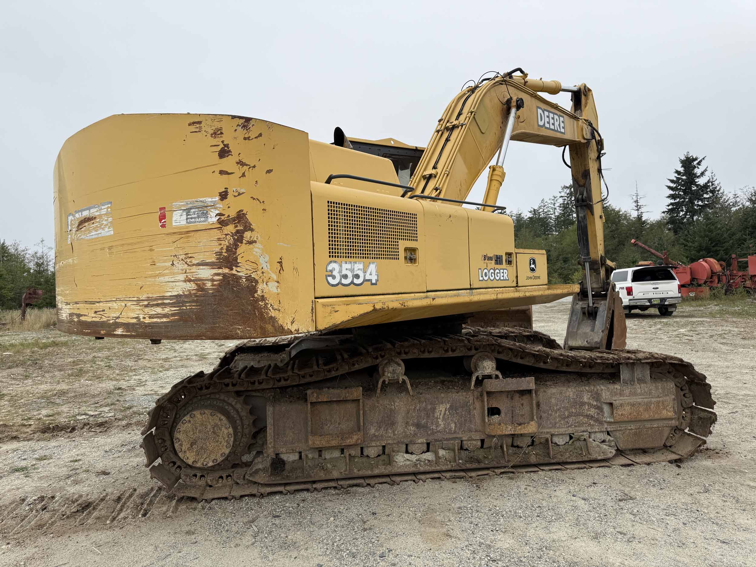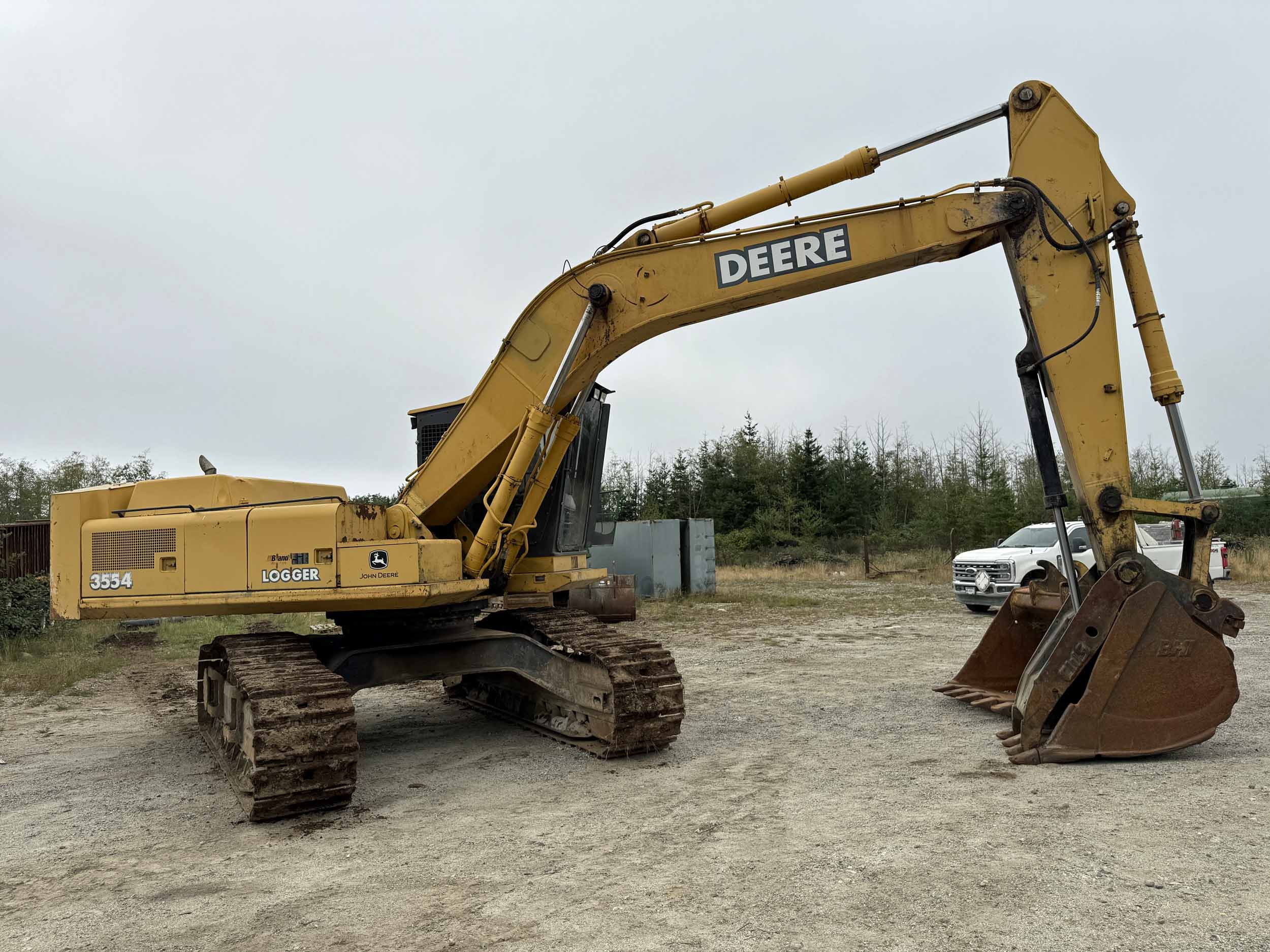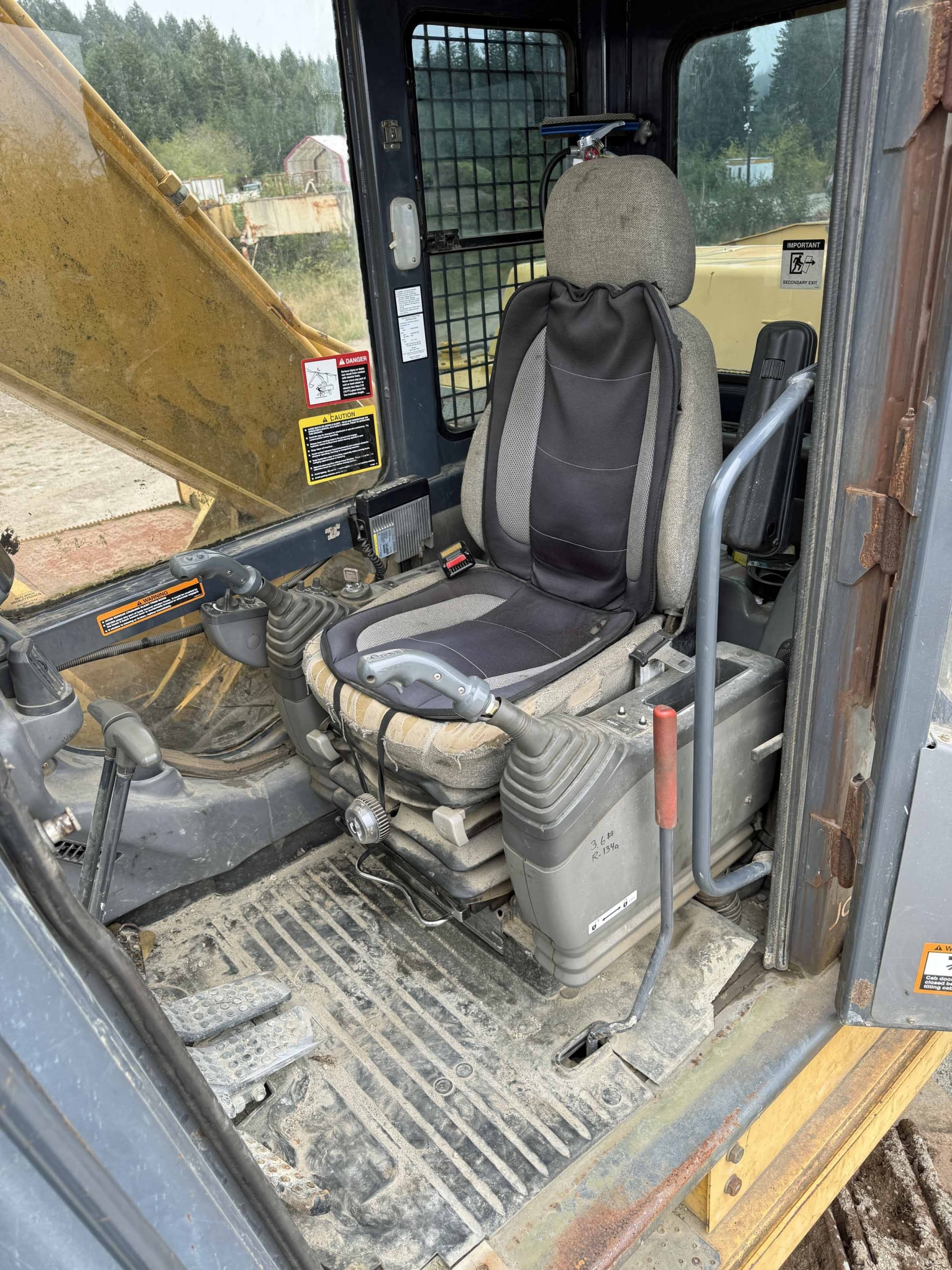 Equipped with 40” BMI dig bucket with four teeth, 64” CWS HD clean up bucket with six teeth, CWS manual quick coupler, CWS hydraulic thumb, hoe front, forestry cab on 8” riser, forestry guarding package, highwalker undercarriage with 28” double bar pads.