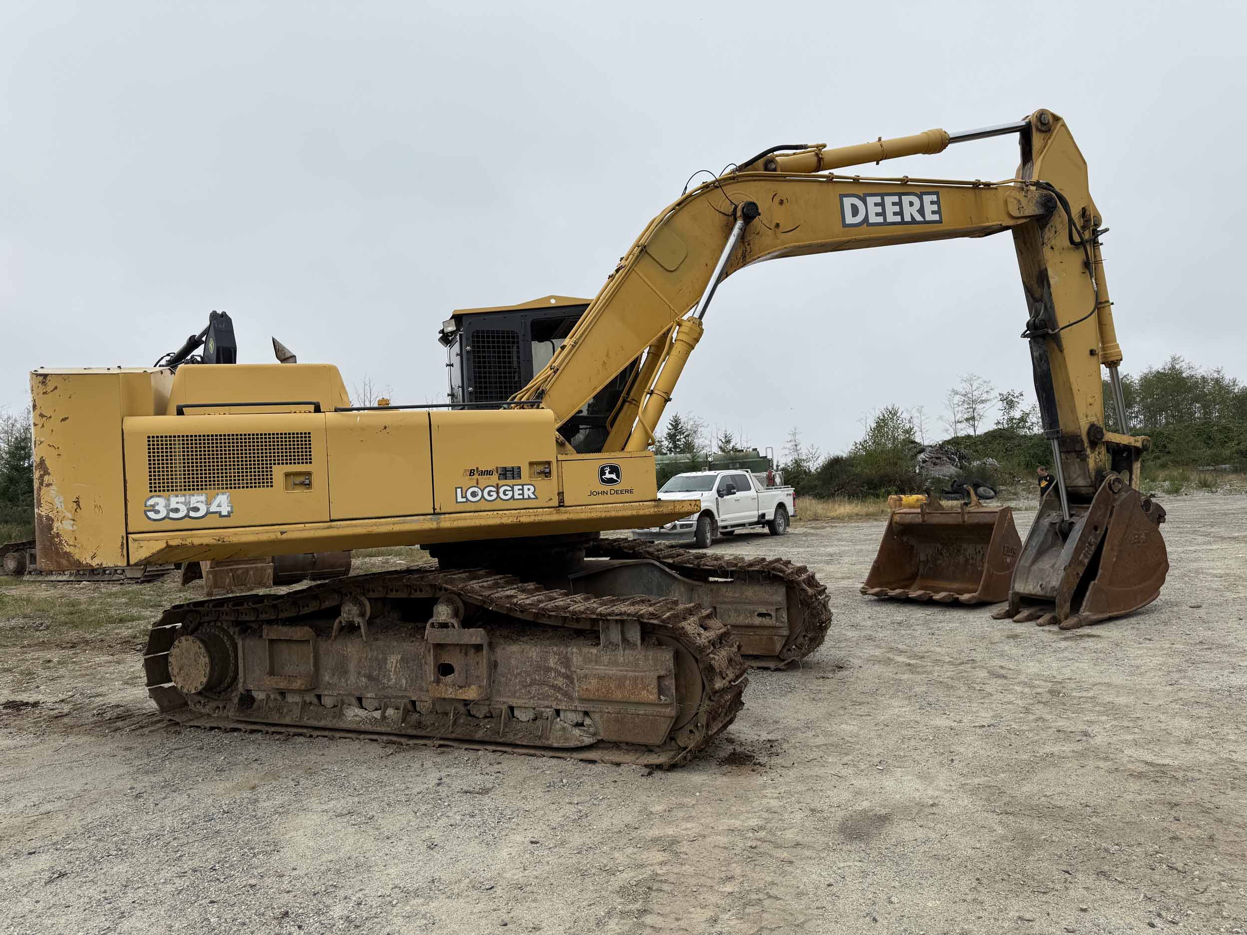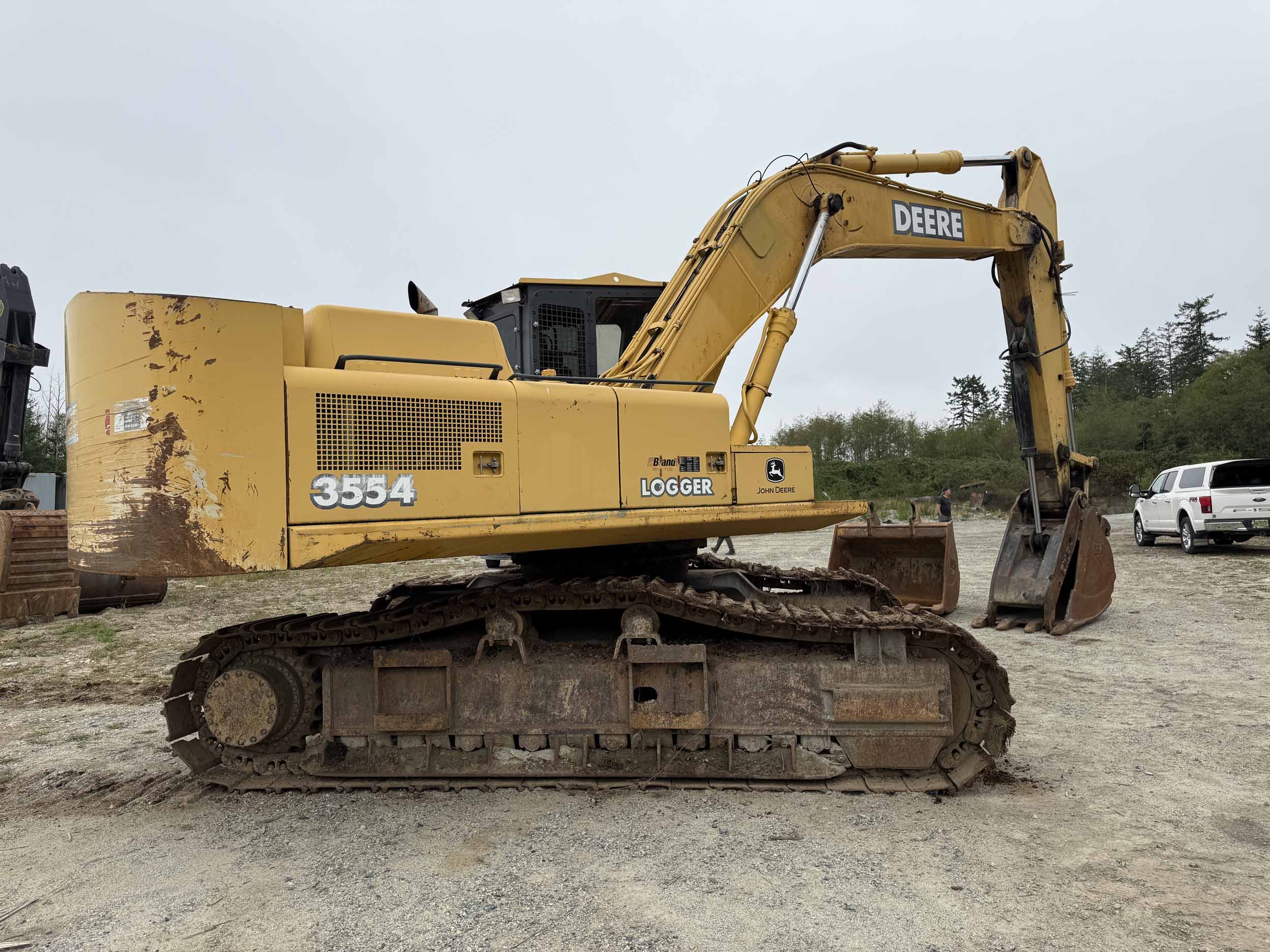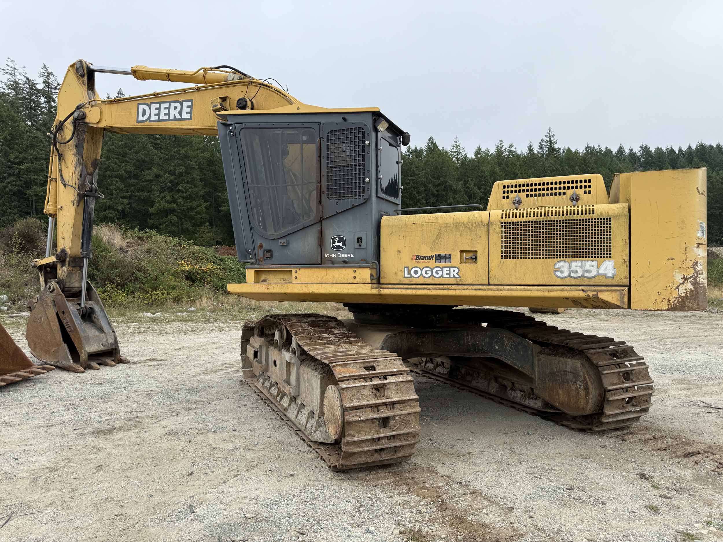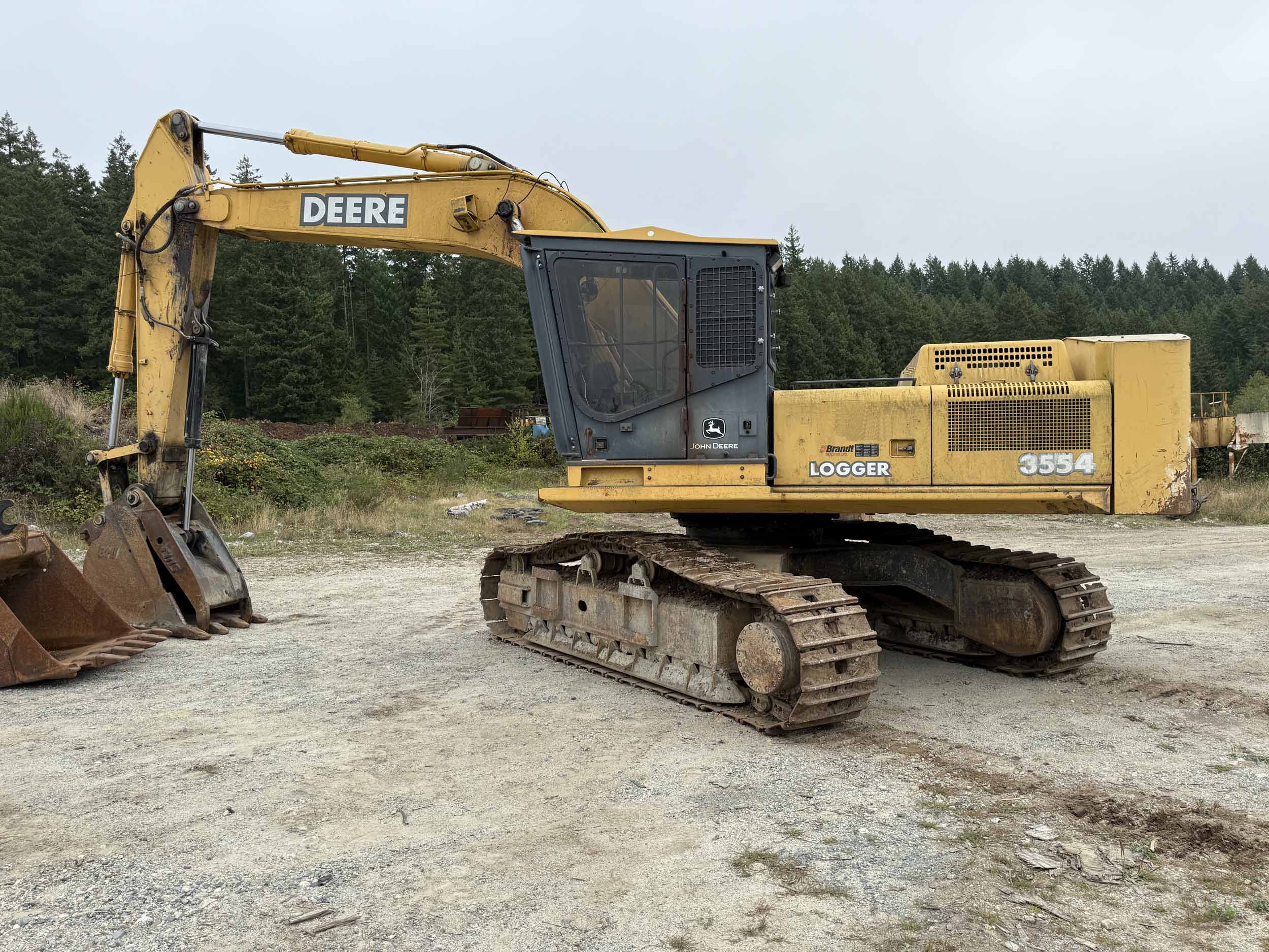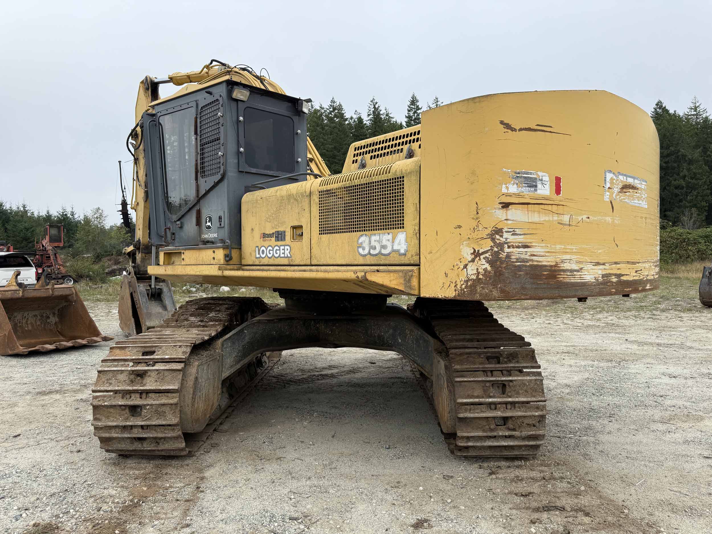 Equipped with 40” BMI dig bucket with four teeth, 64” CWS HD clean up bucket with six teeth, CWS manual quick coupler, CWS hydraulic thumb, hoe front, forestry cab on 8” riser, forestry guarding package, highwalker undercarriage with 28” double bar pads.