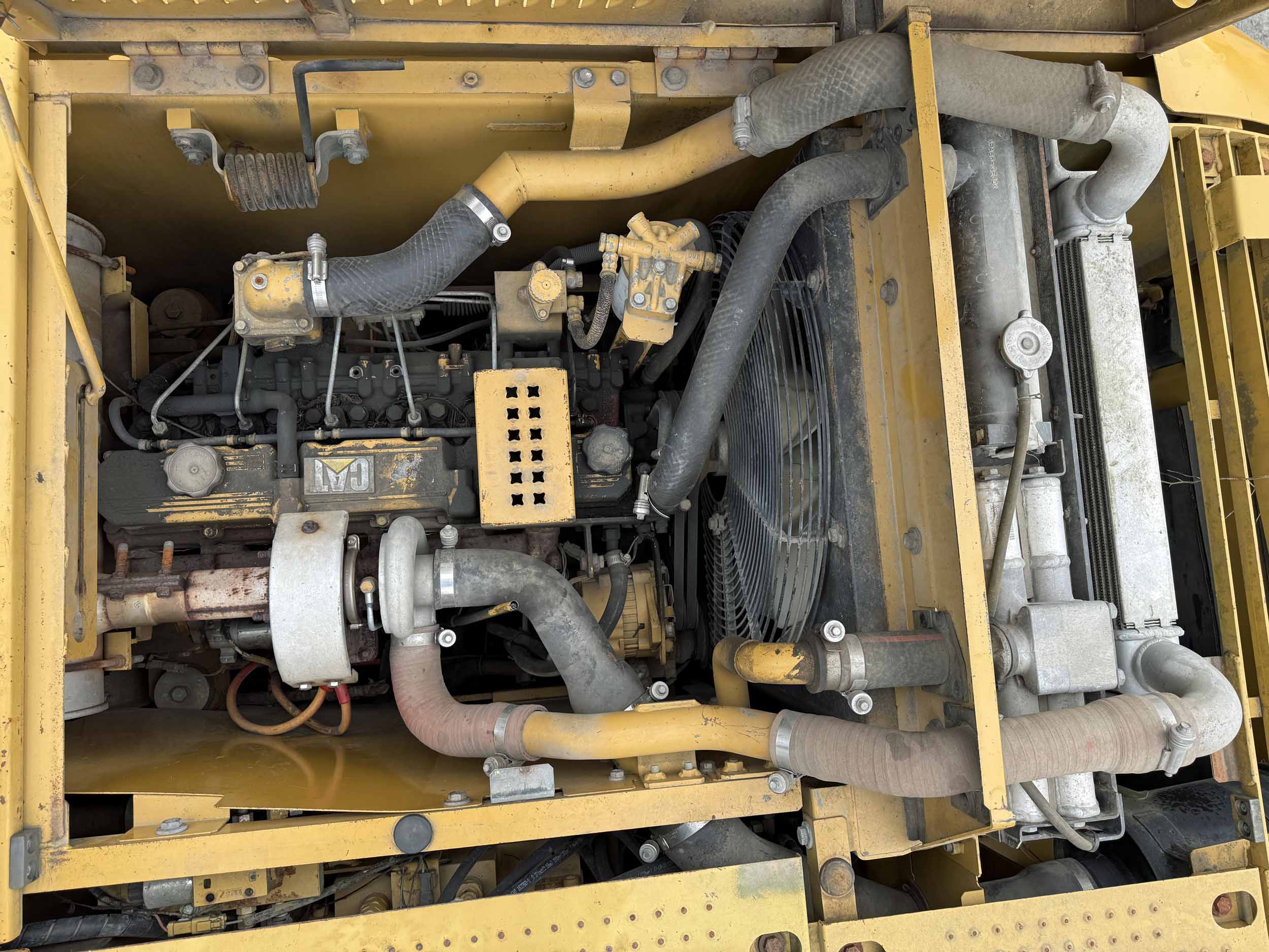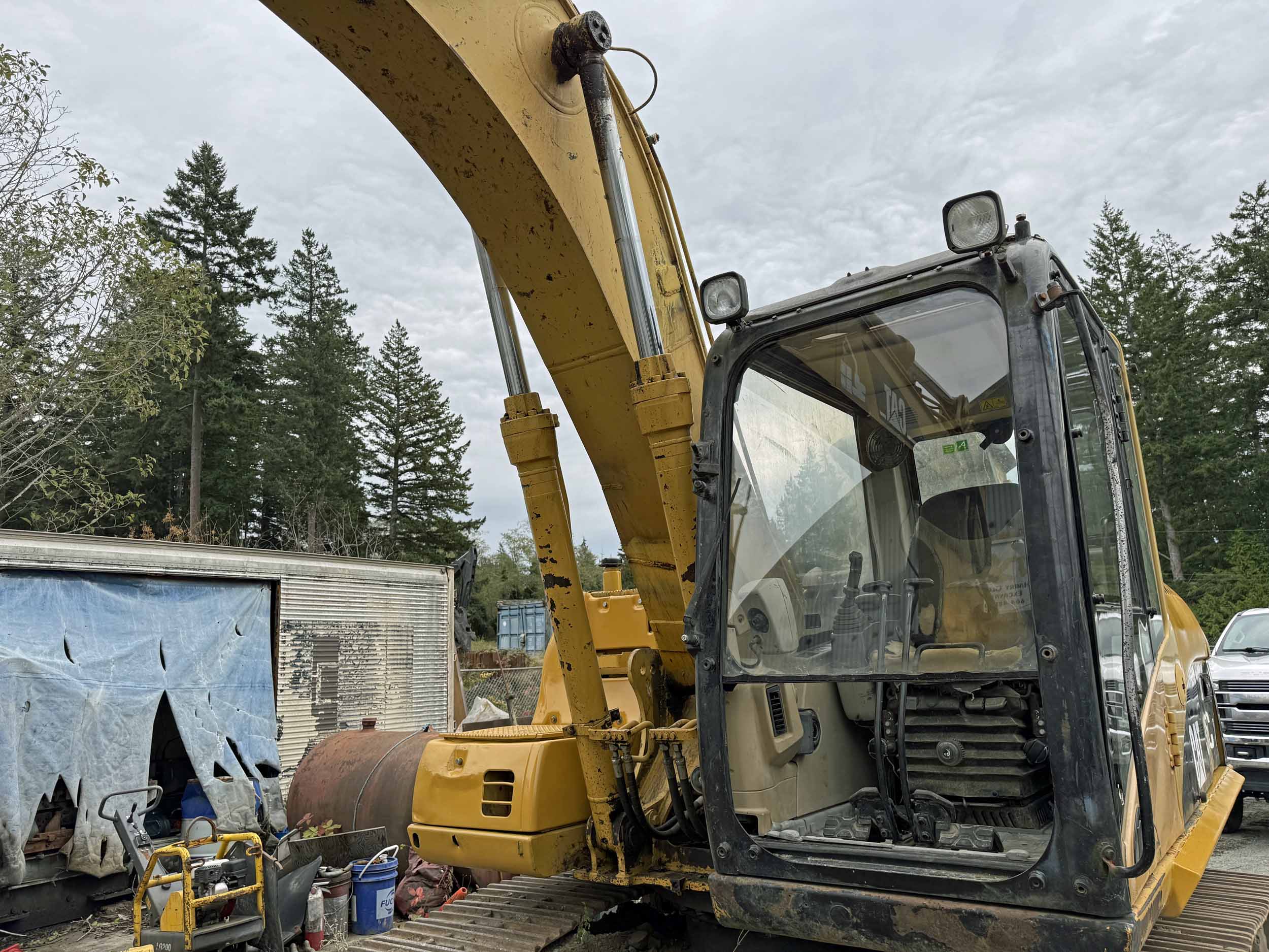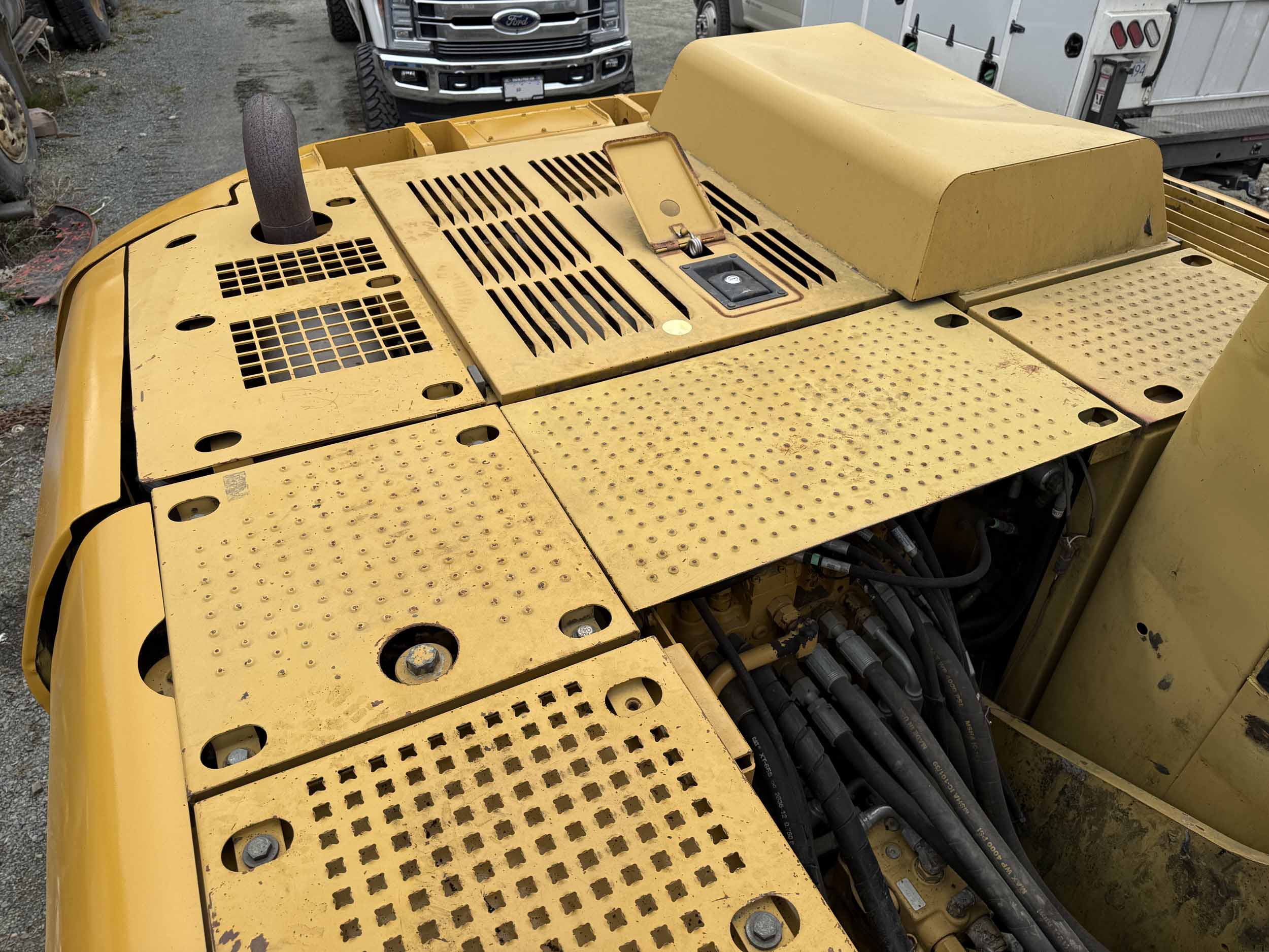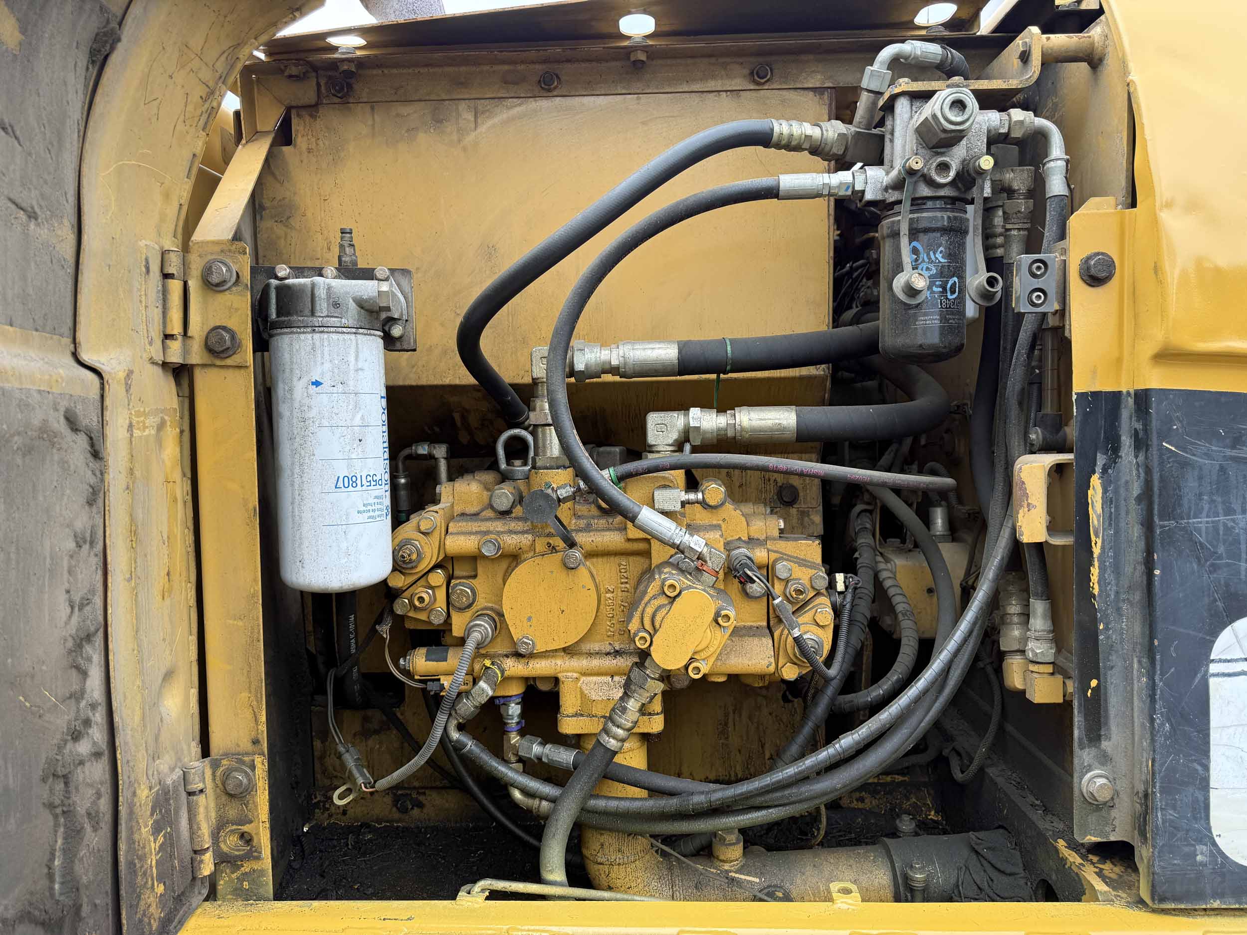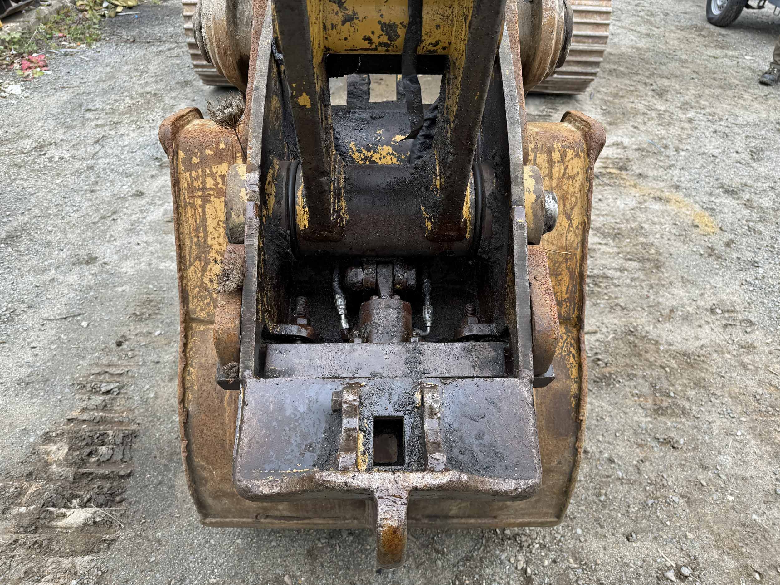 Equipped with Caterpillar 34”‘dig bucket with four teeth, clean up bucket, Caterpillar hydraulic quick coupler, Daequip pro link hydraulic thumb, 123” stick, hoe boom, cab, standard undercarriage with 28” triple bar pads.