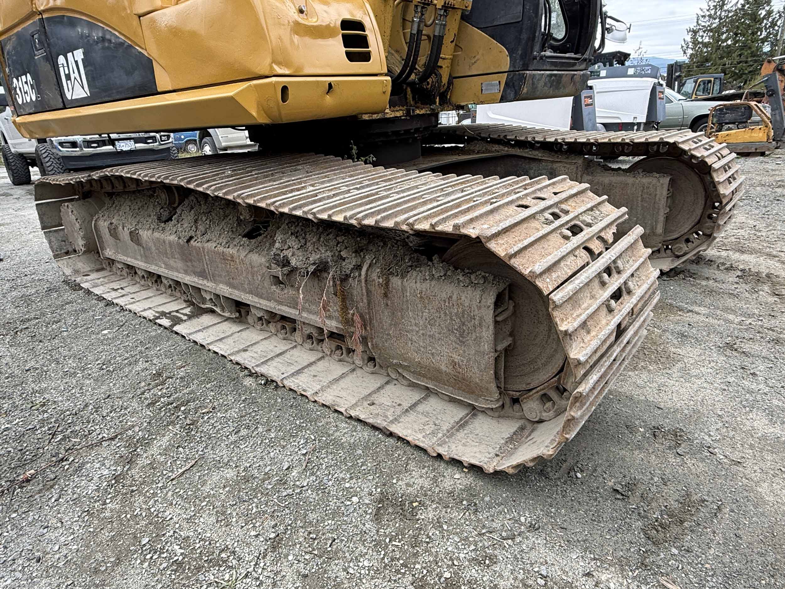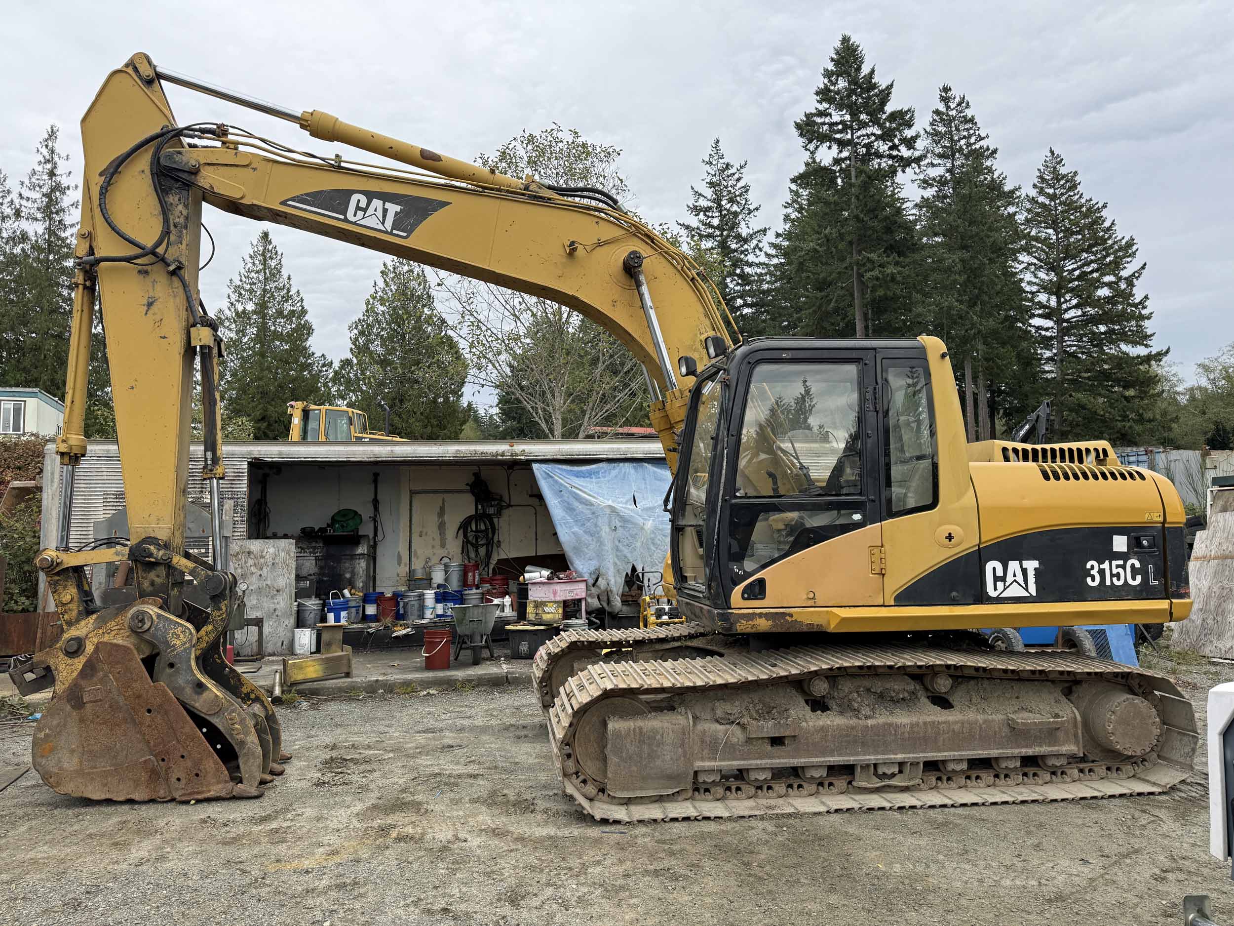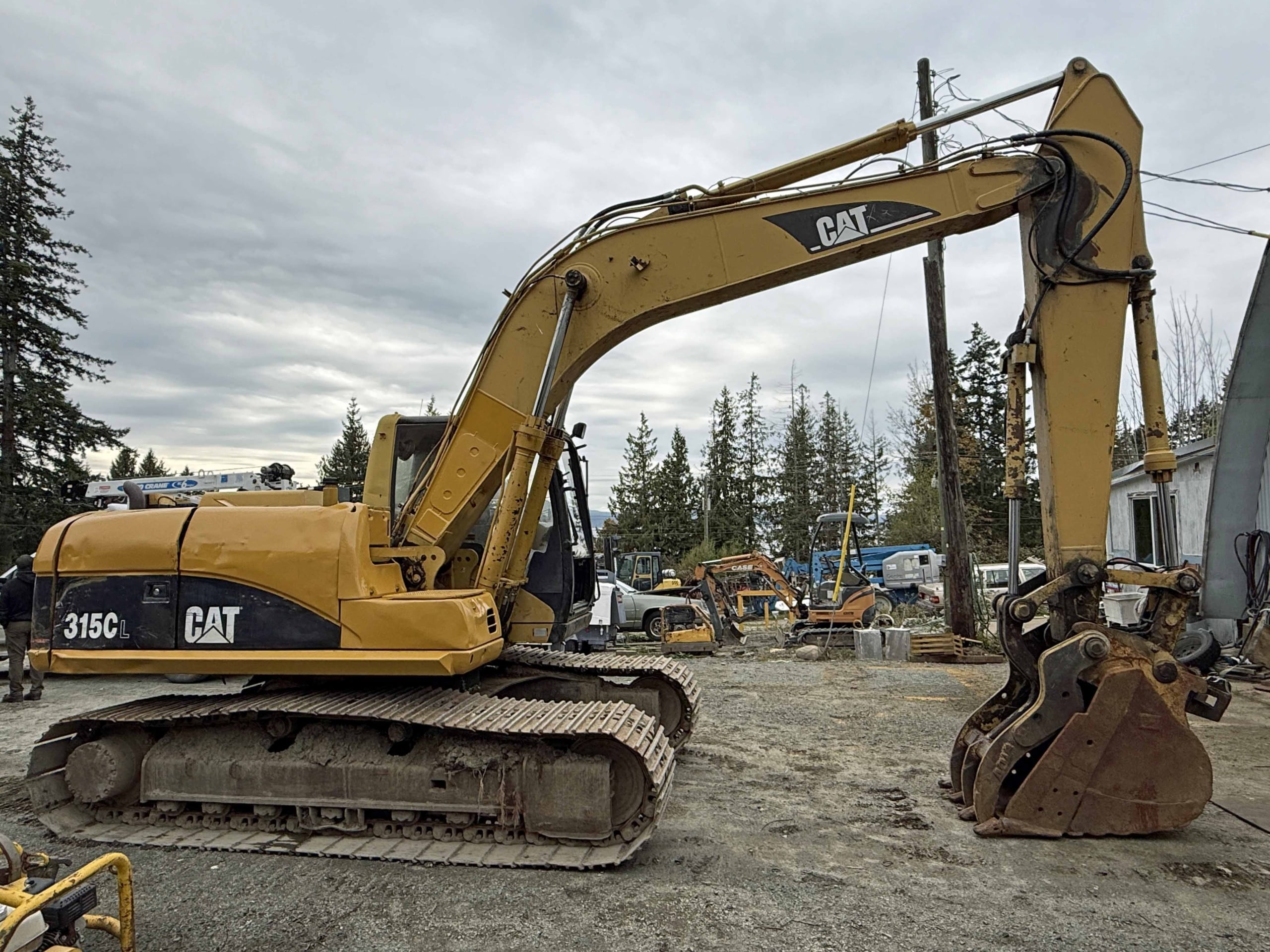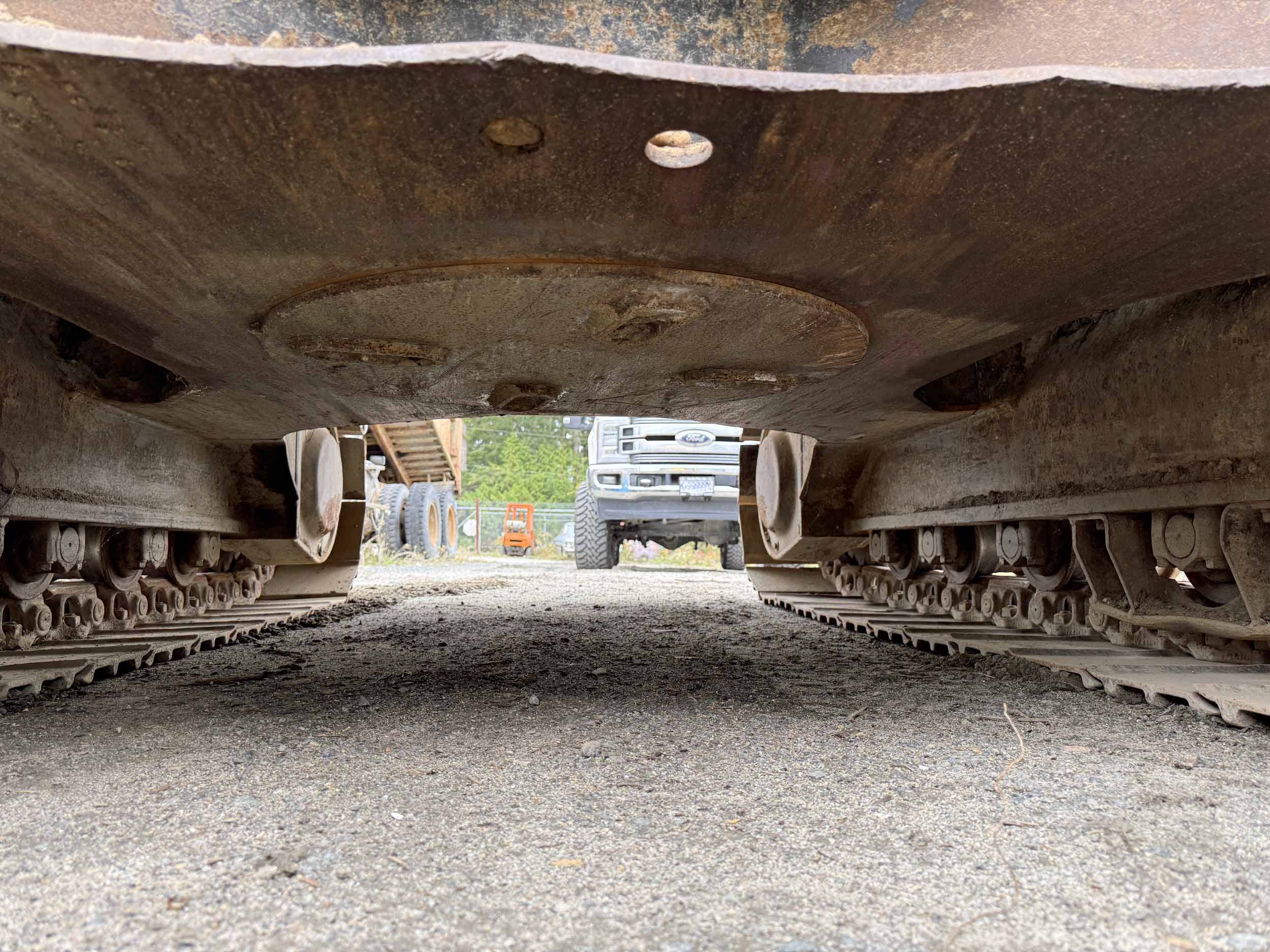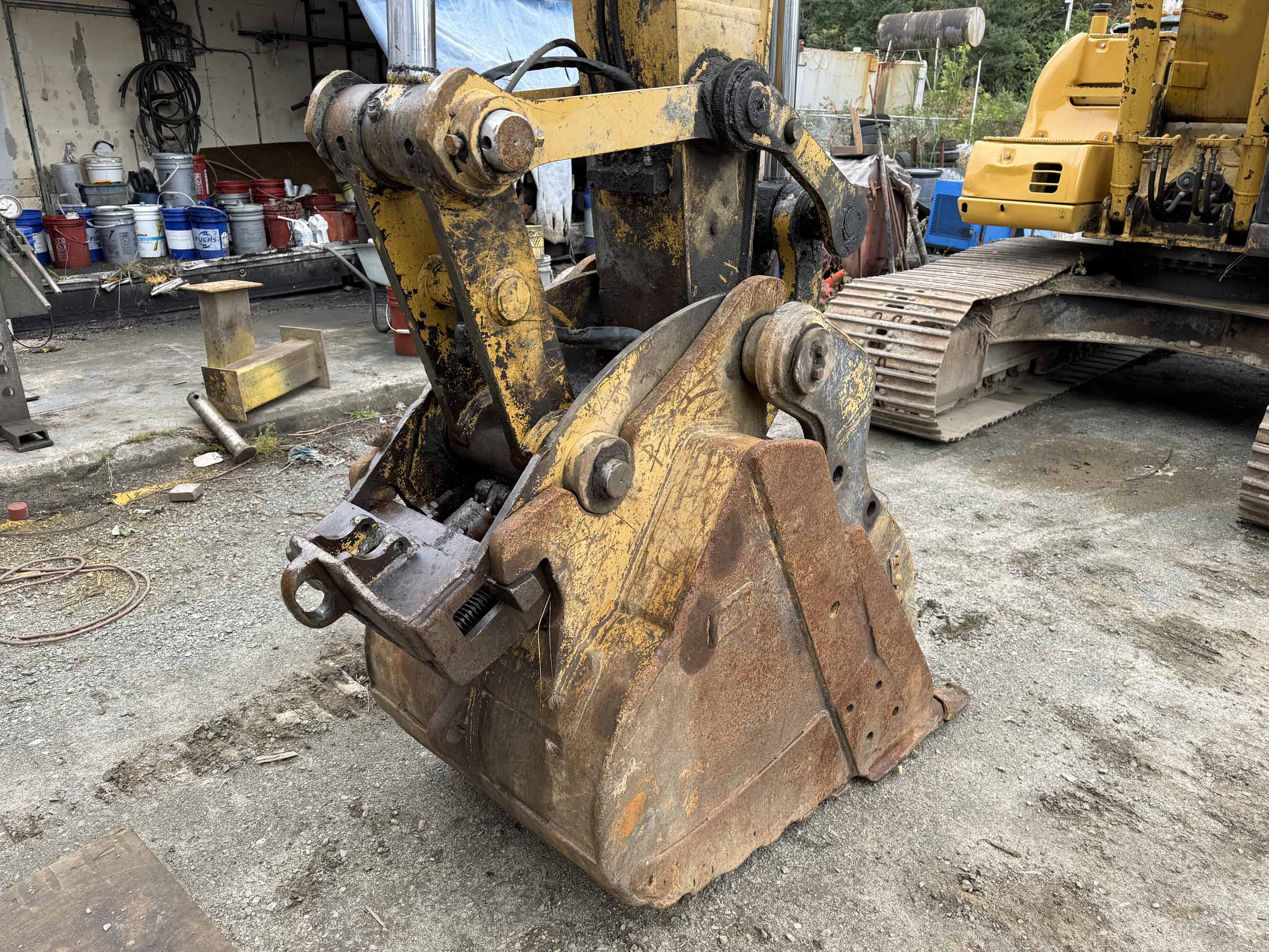 Equipped with Caterpillar 34”‘dig bucket with four teeth, clean up bucket, Caterpillar hydraulic quick coupler, Daequip pro link hydraulic thumb, 123” stick, hoe boom, cab, standard undercarriage with 28” triple bar pads.