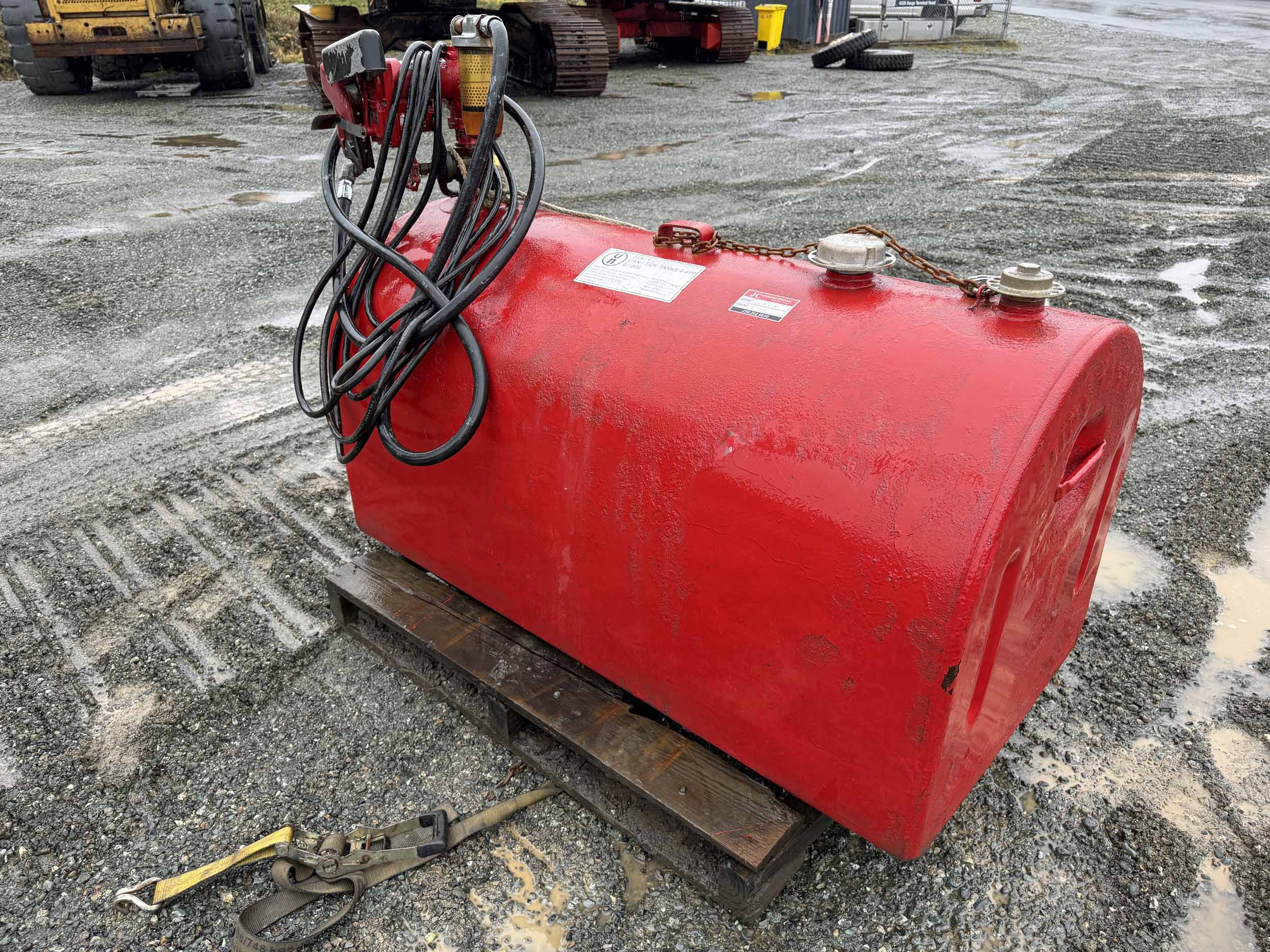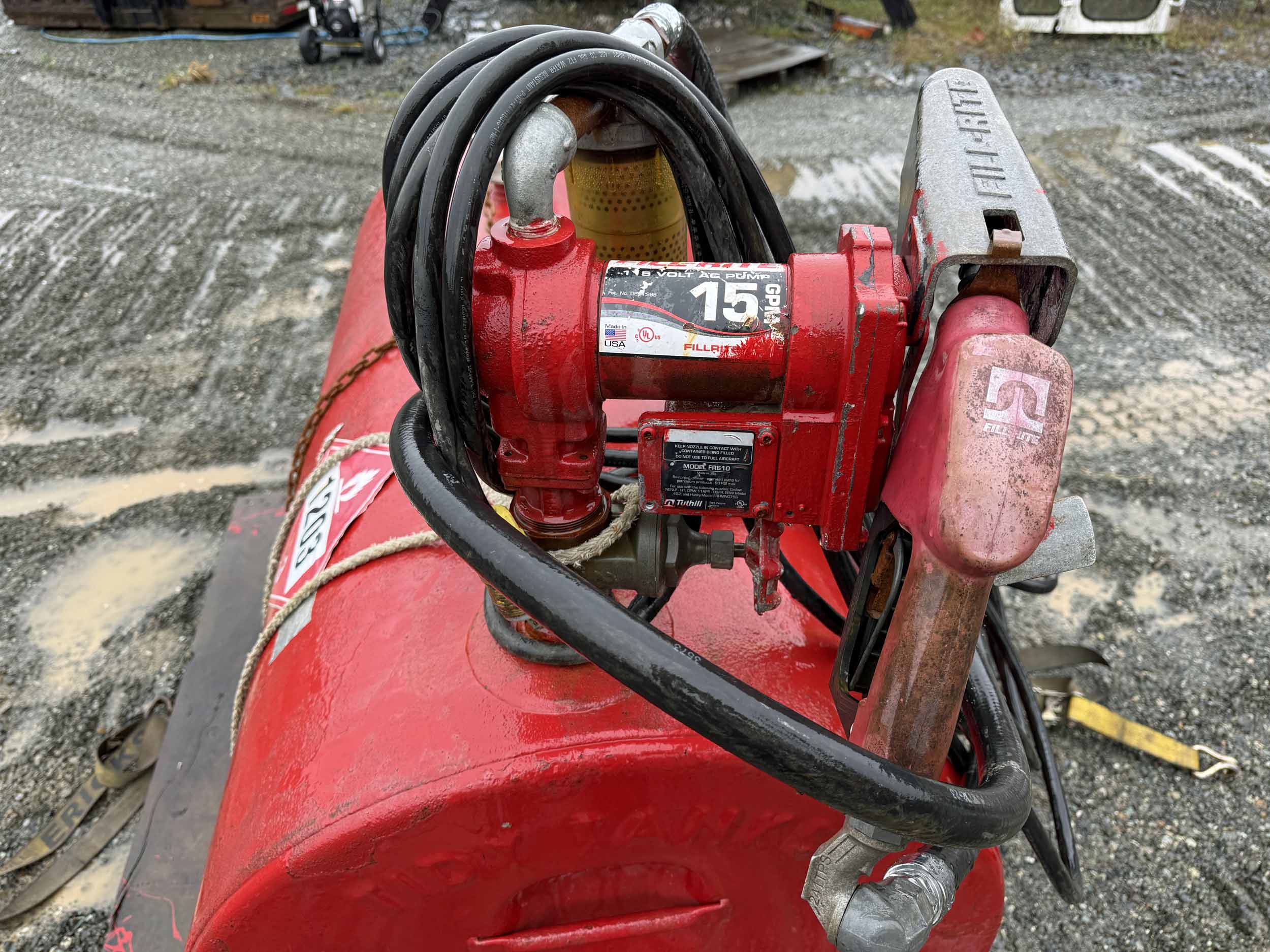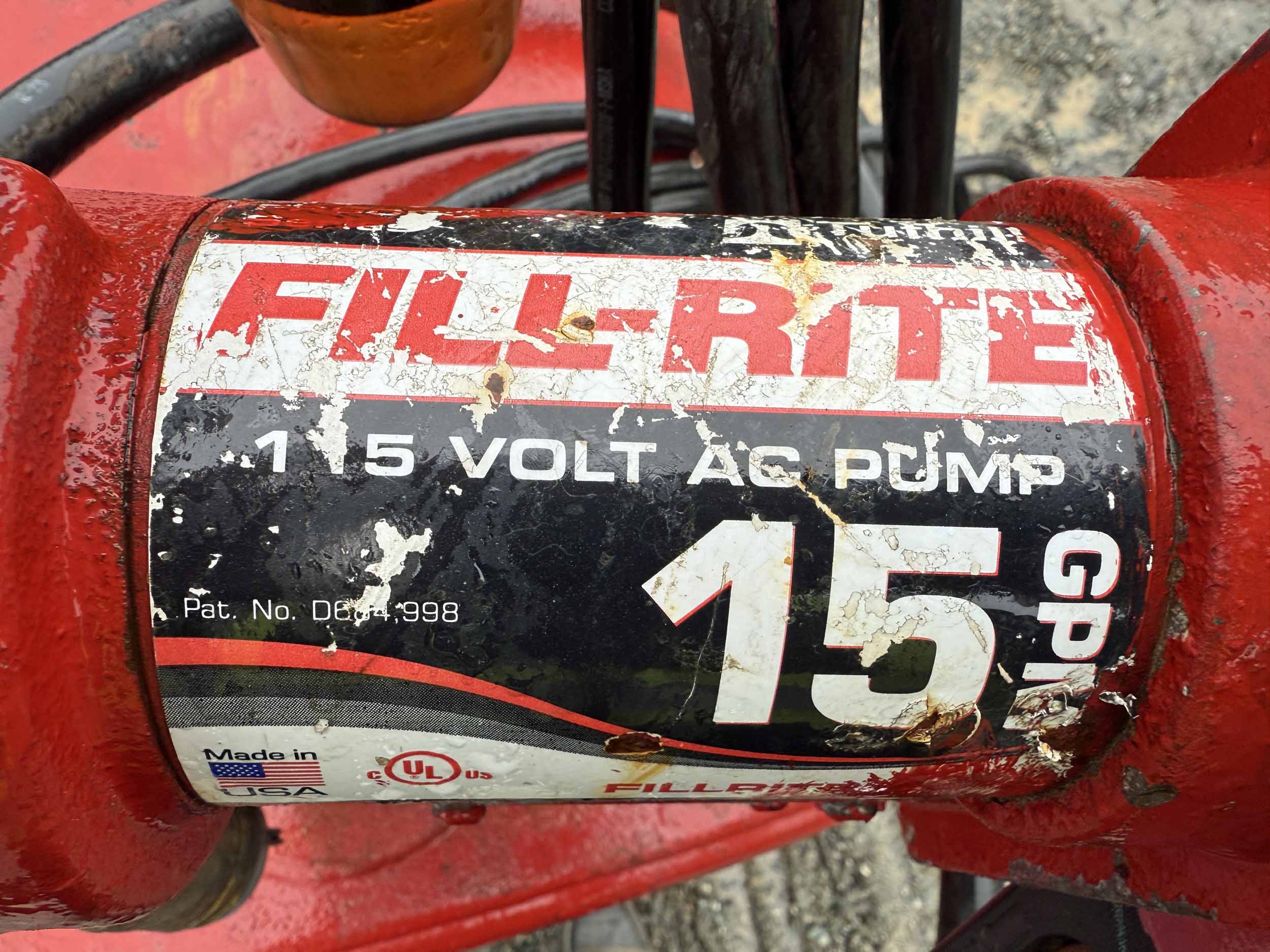 Equipped with Fillrite 15 GPM electric pump (pump configured to plug into generator set), filter, hose and nozzle.