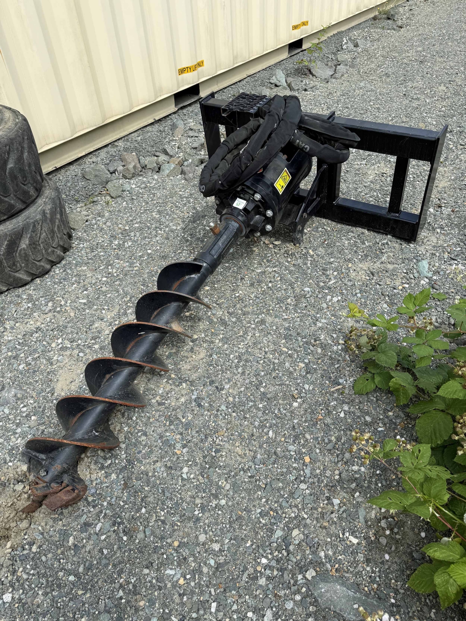 Equipped with 9″ bit, universal skid steer attachment plate.