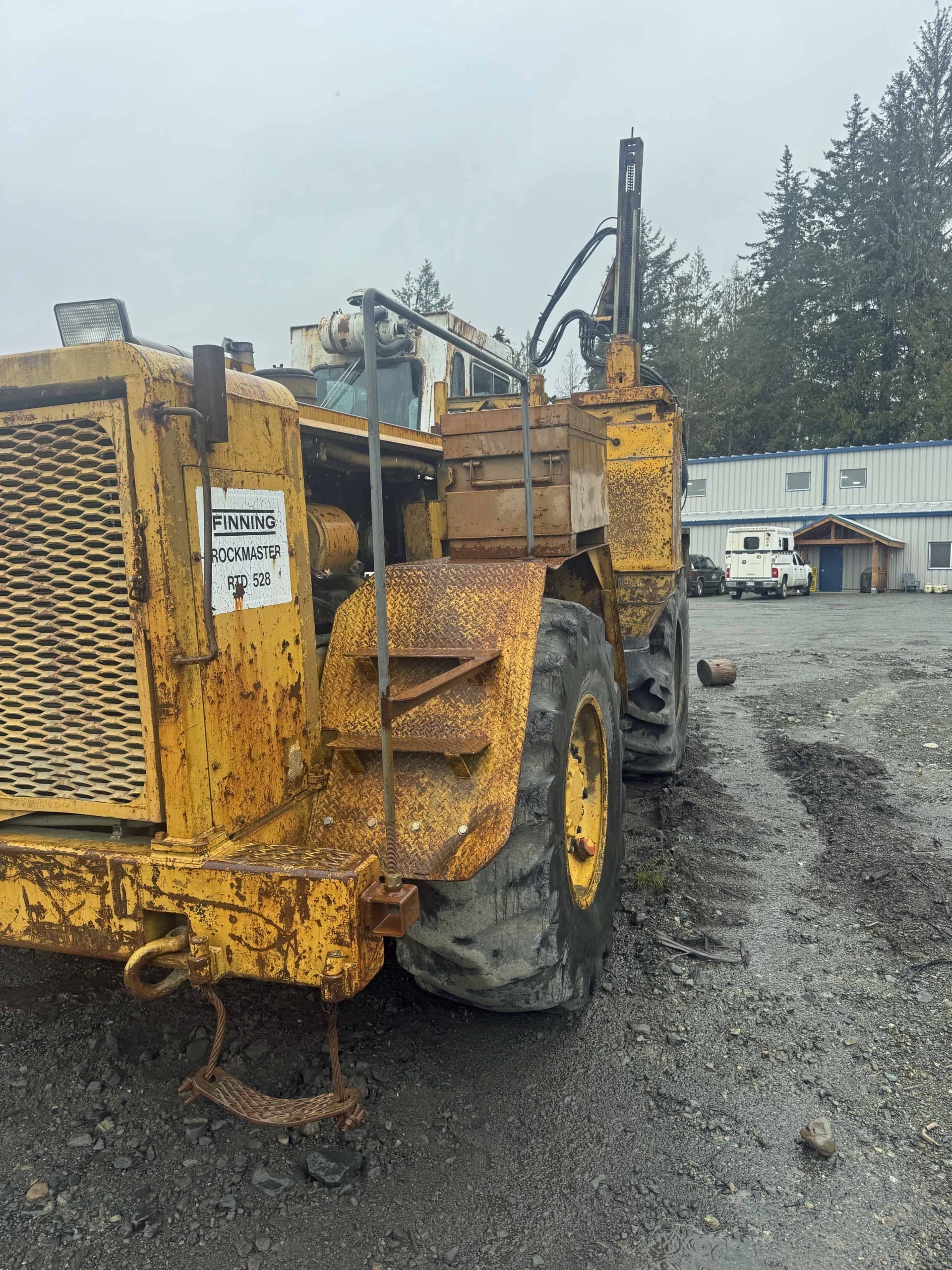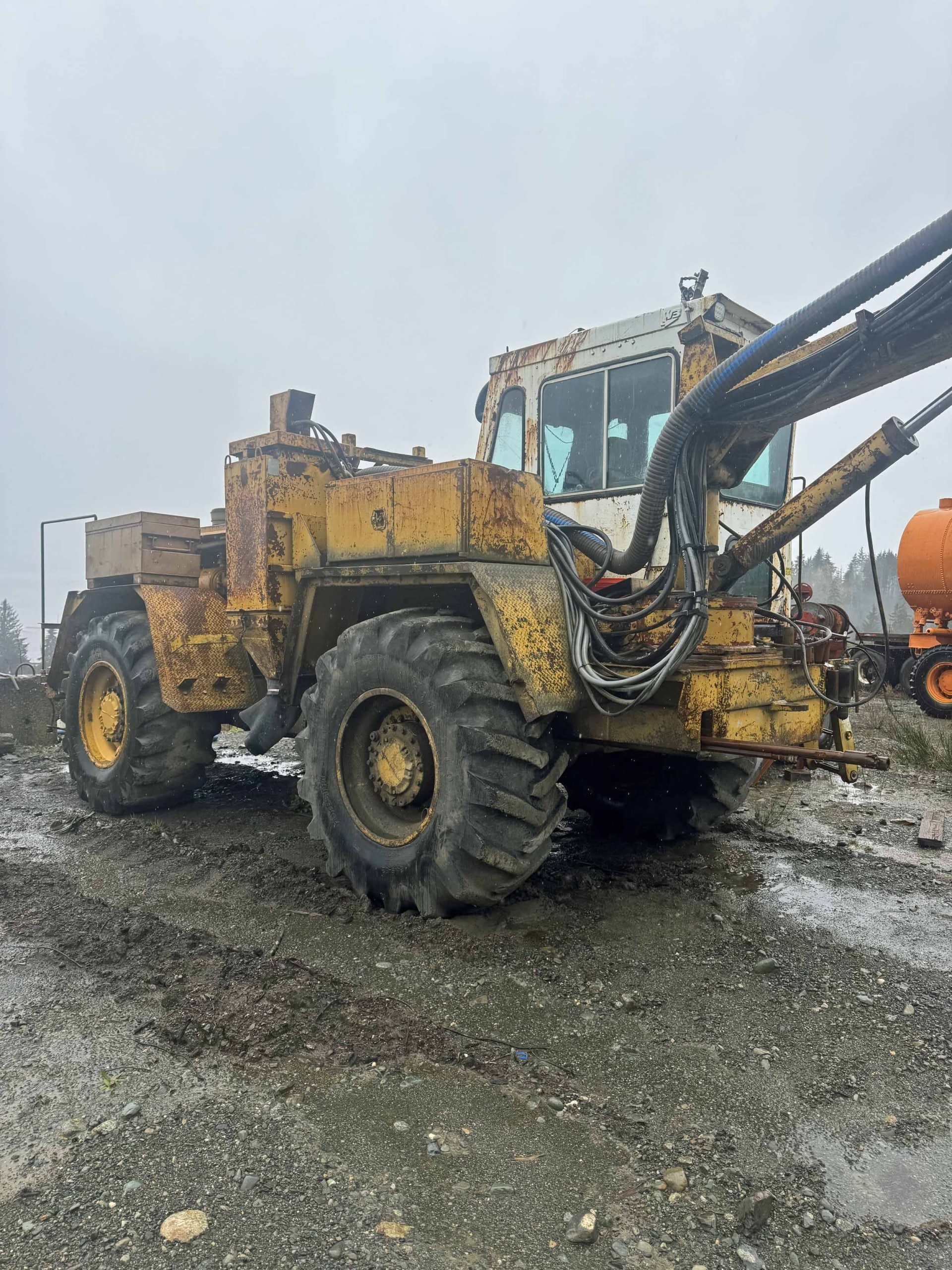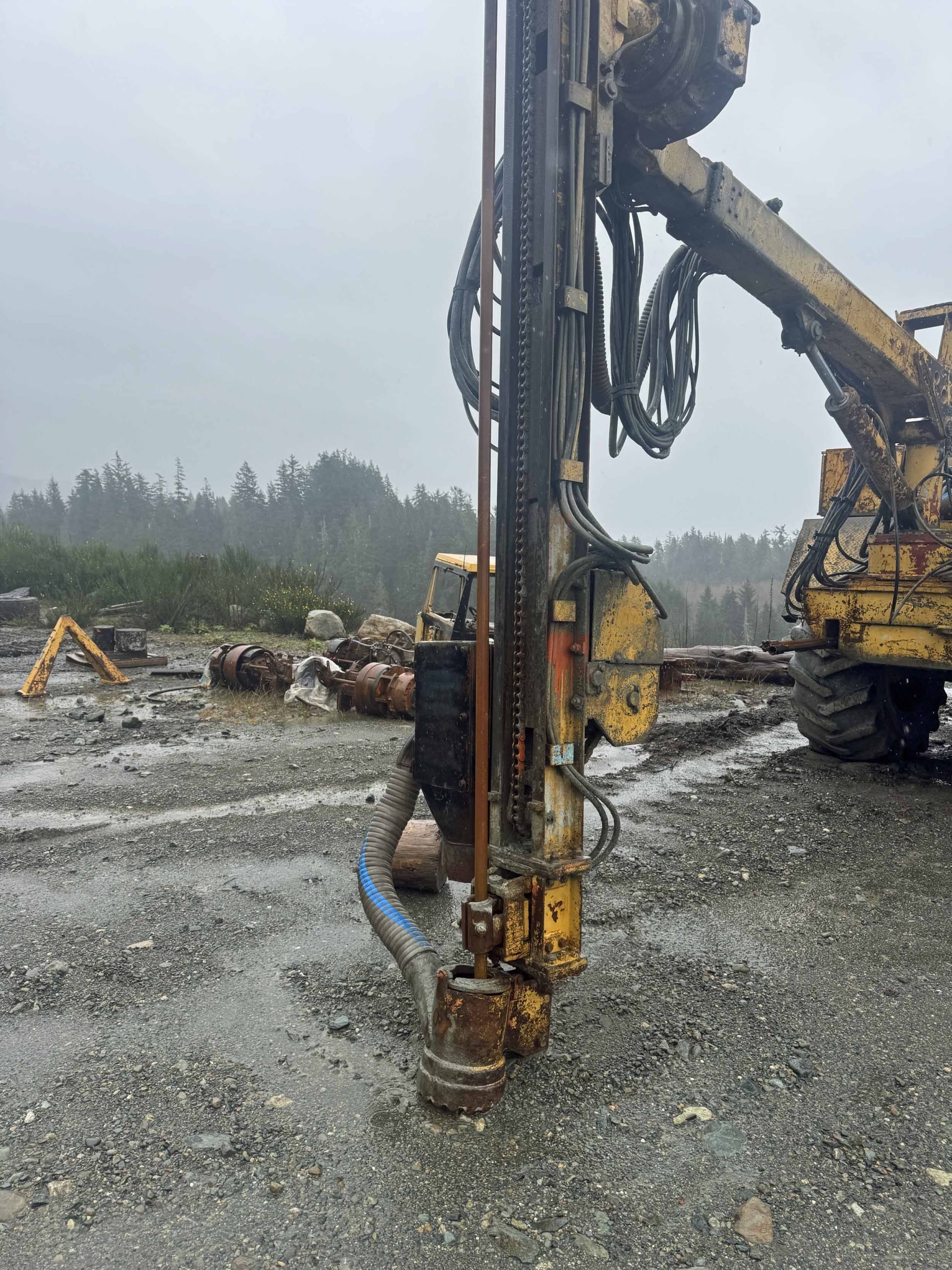 c/w: Gardner Denver HPR1A hammer, 16’ steel feed beam with hydraulic centralizer, full roll over boom, dust collector, WBM cab, Caterpillar 3306 engine, mounted on Caterpillar 528 grapple skidder carrier with 24.5X32 tires.